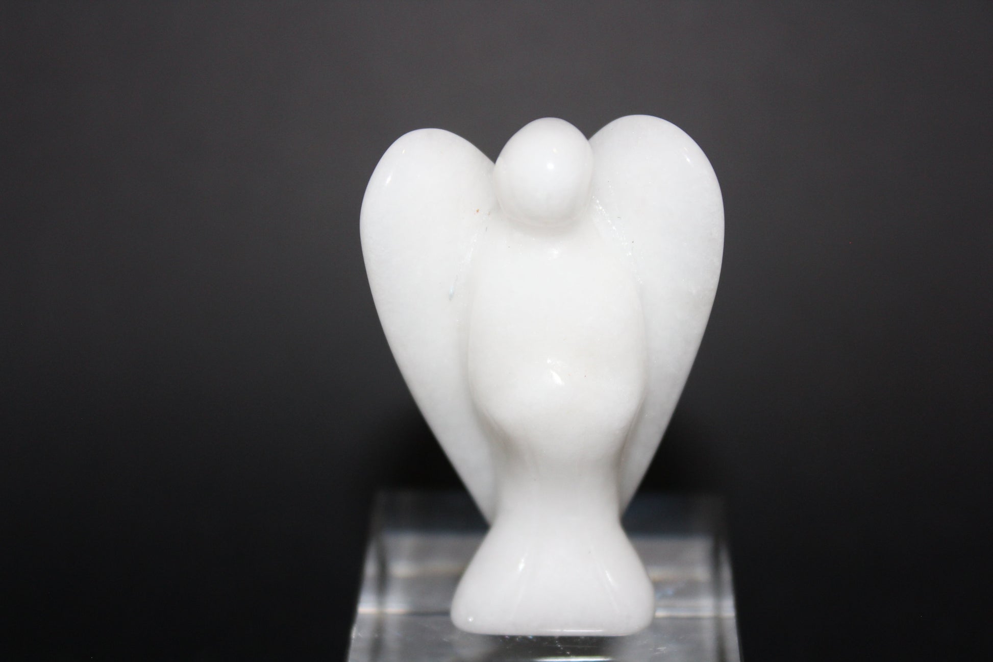 This gorgeous Snow Quartz Angel is approx. 50mm (high) x 35mm (wide).
