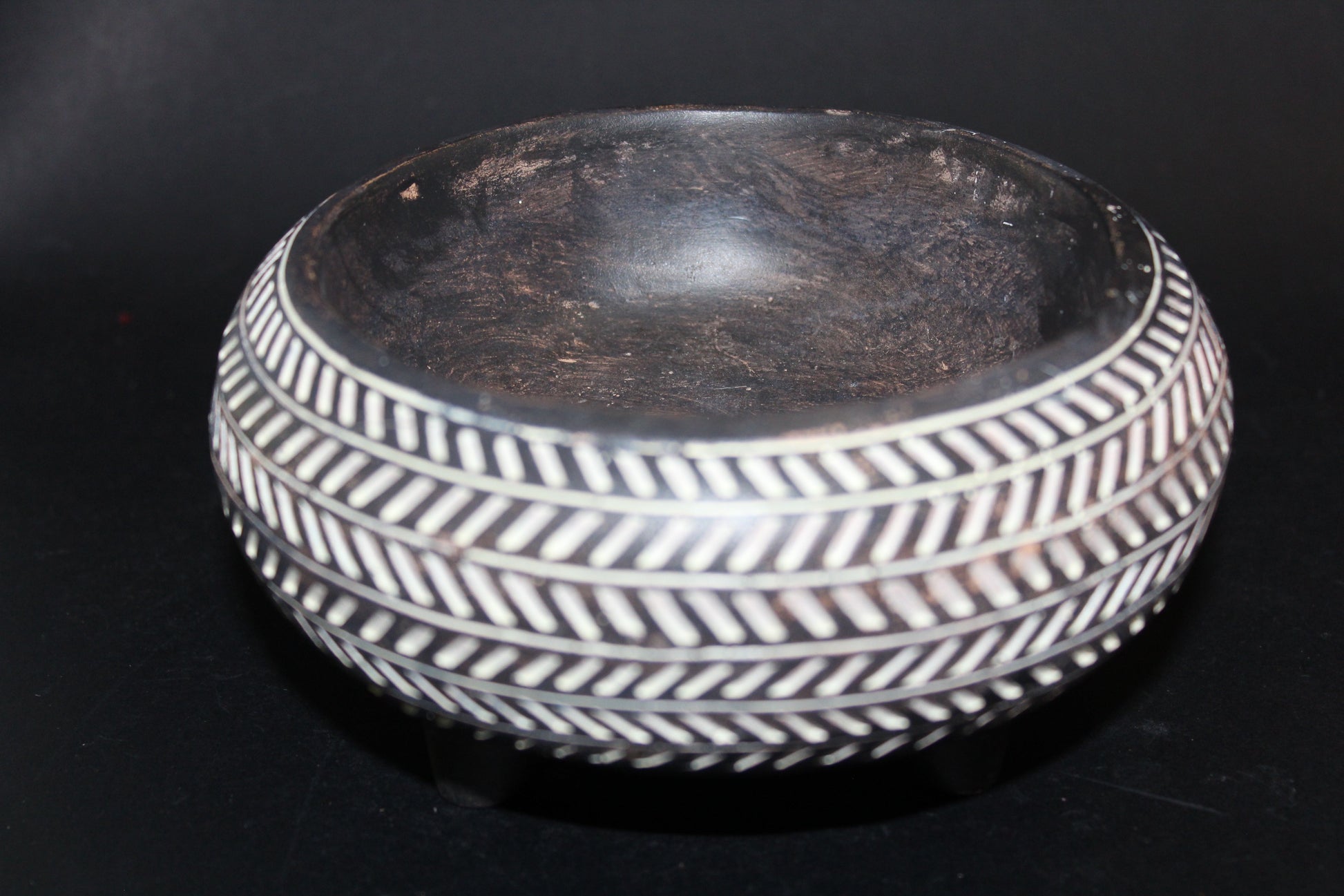 | Ceramic bowl with a beautiful carved timber look. Bowl has 3 legs. Perfect for your crystal display - 150mm round and 80mm high. |