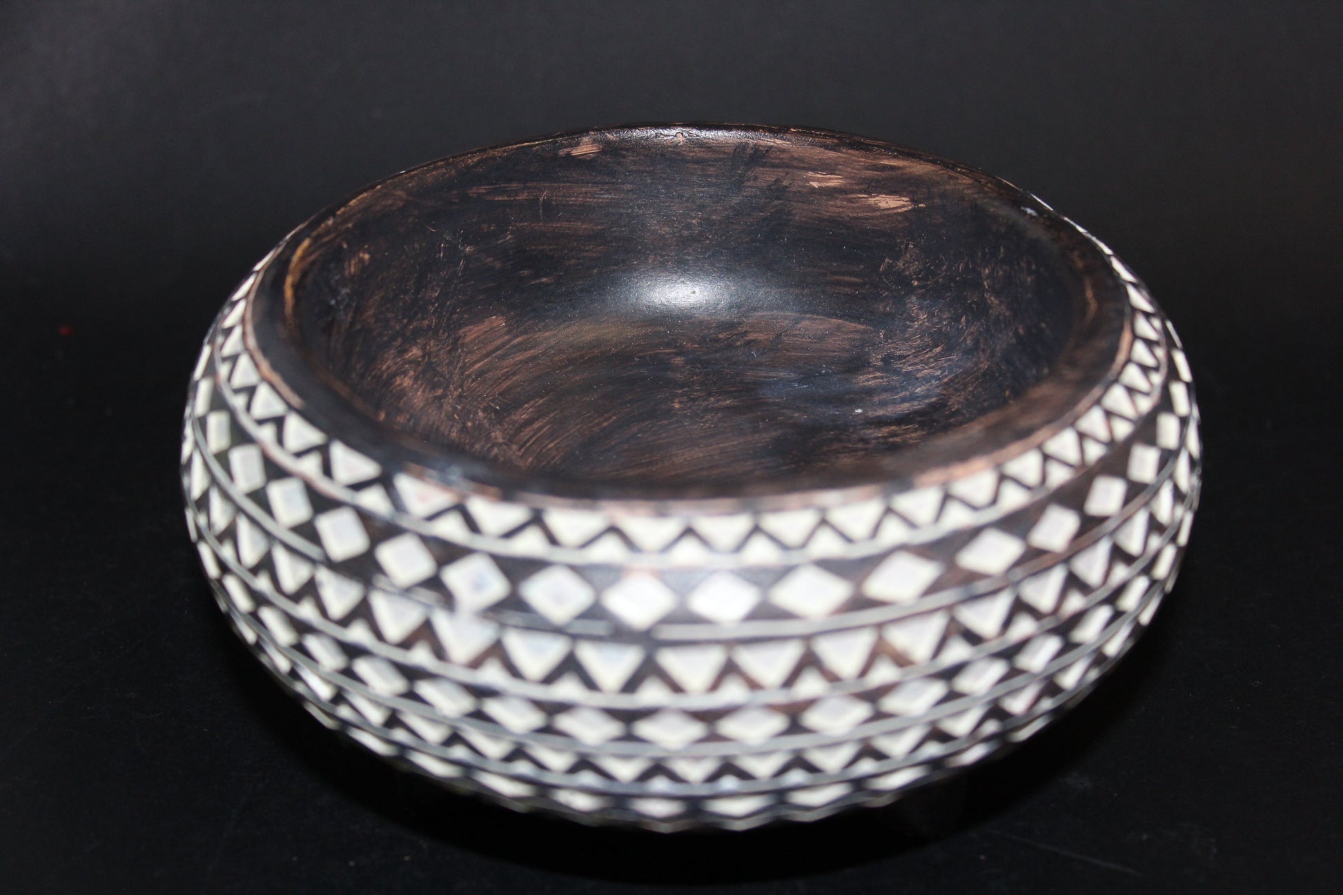 | Ceramic bowl with a beautiful carved timber look. Bowl has 3 legs. Perfect for your crystal display - 150mm round and 80mm high. |
