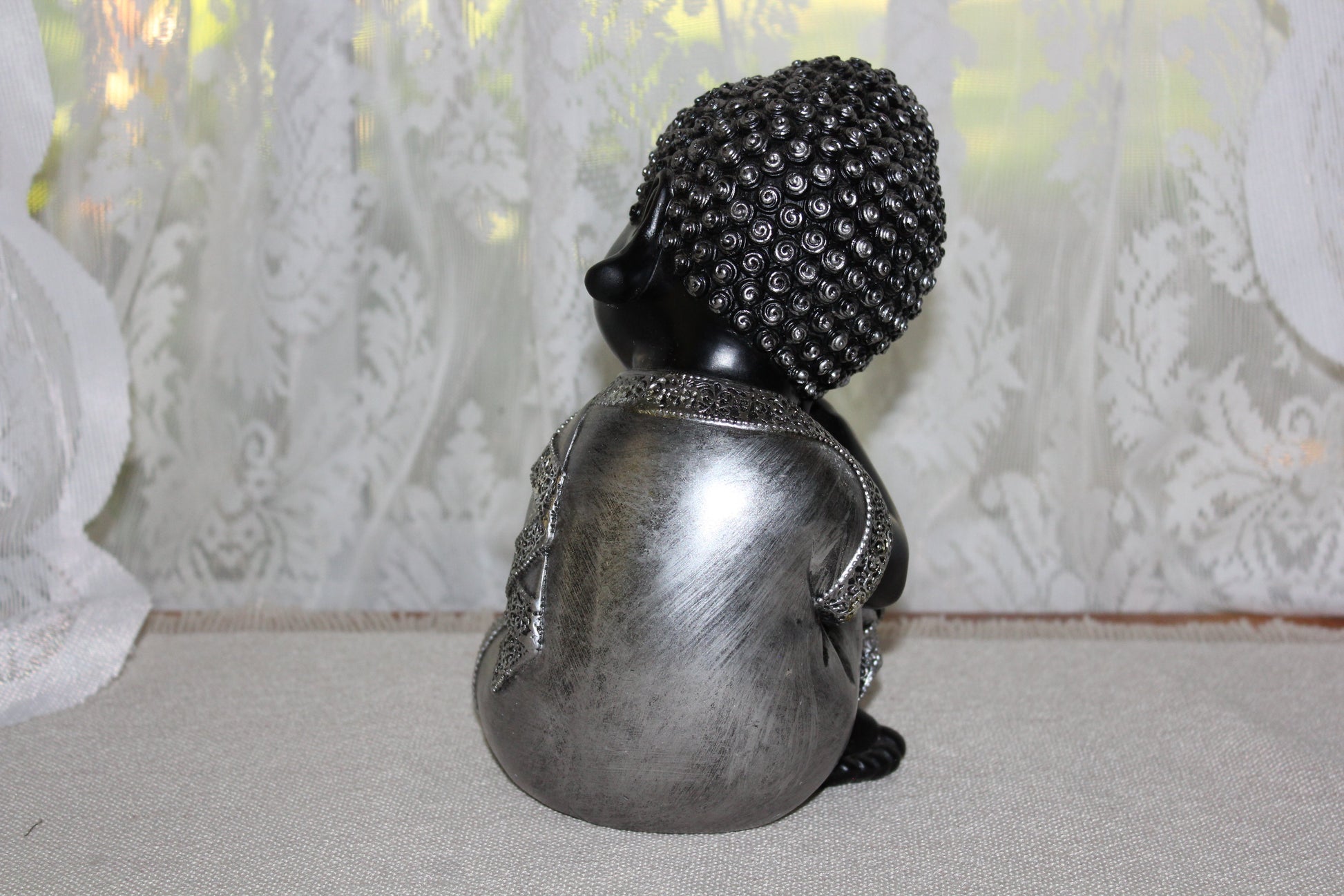 This Cute black and silver Buddhist Monk Statue is 220mm (h).
