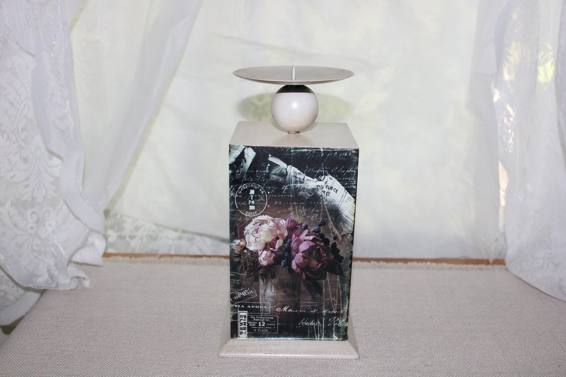 This beautiful, rose adorned, French inspired Candle Holder holds pillar and decorative style candles.