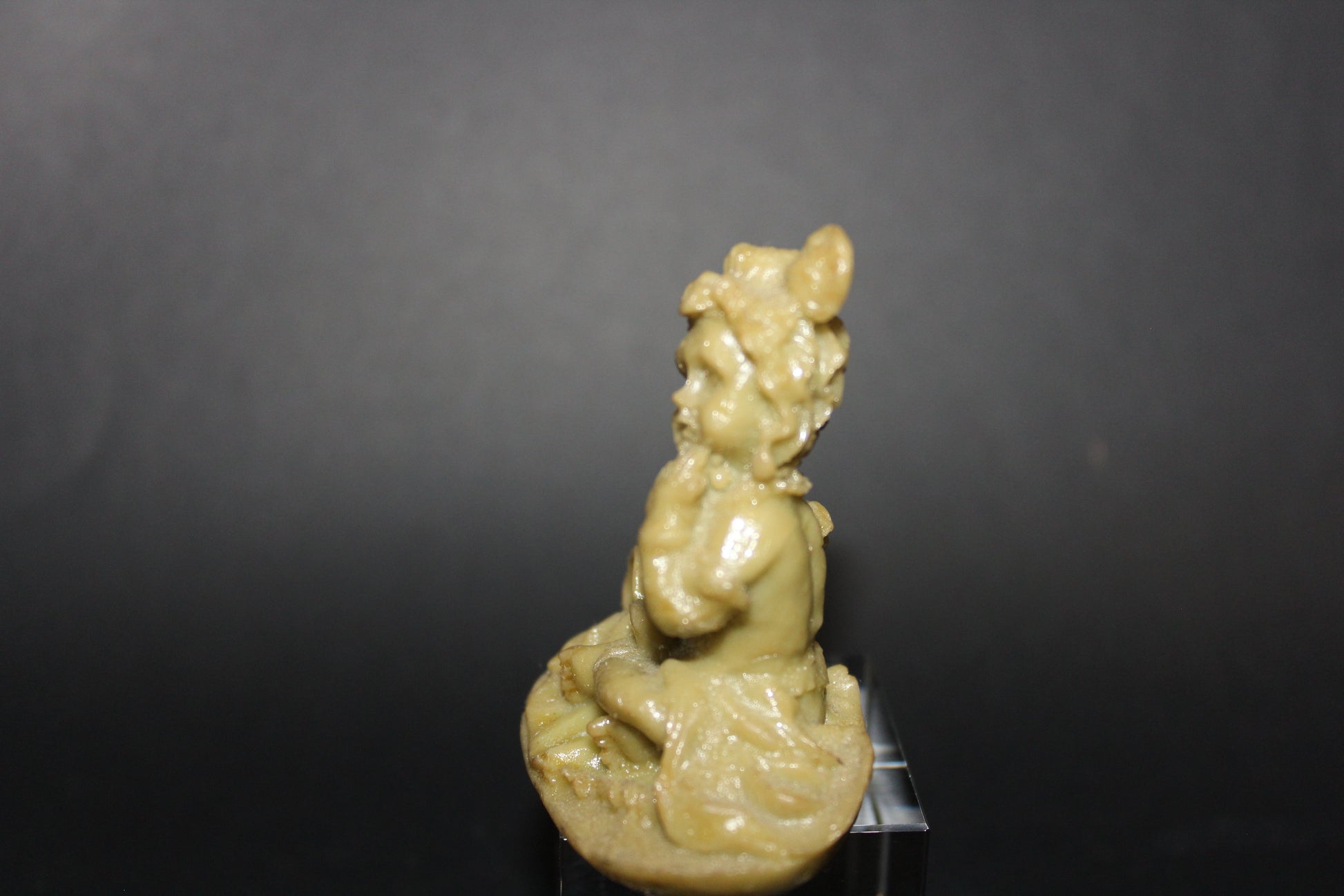 This Soapstone Krishna is 65mm (h) x 50mm (w) x 35mm (d) and 40gms.