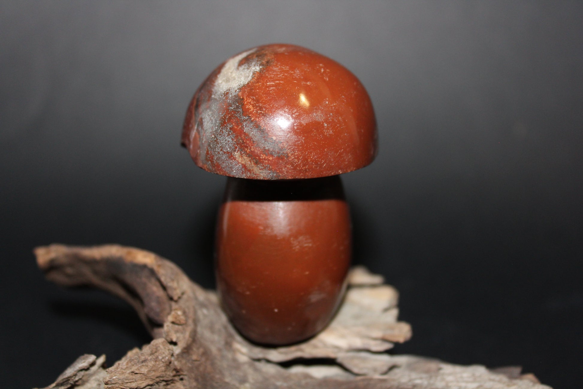 This Red Jasper Mushroom is 60mm (h) x 45mm (w/d) x and 120gms.