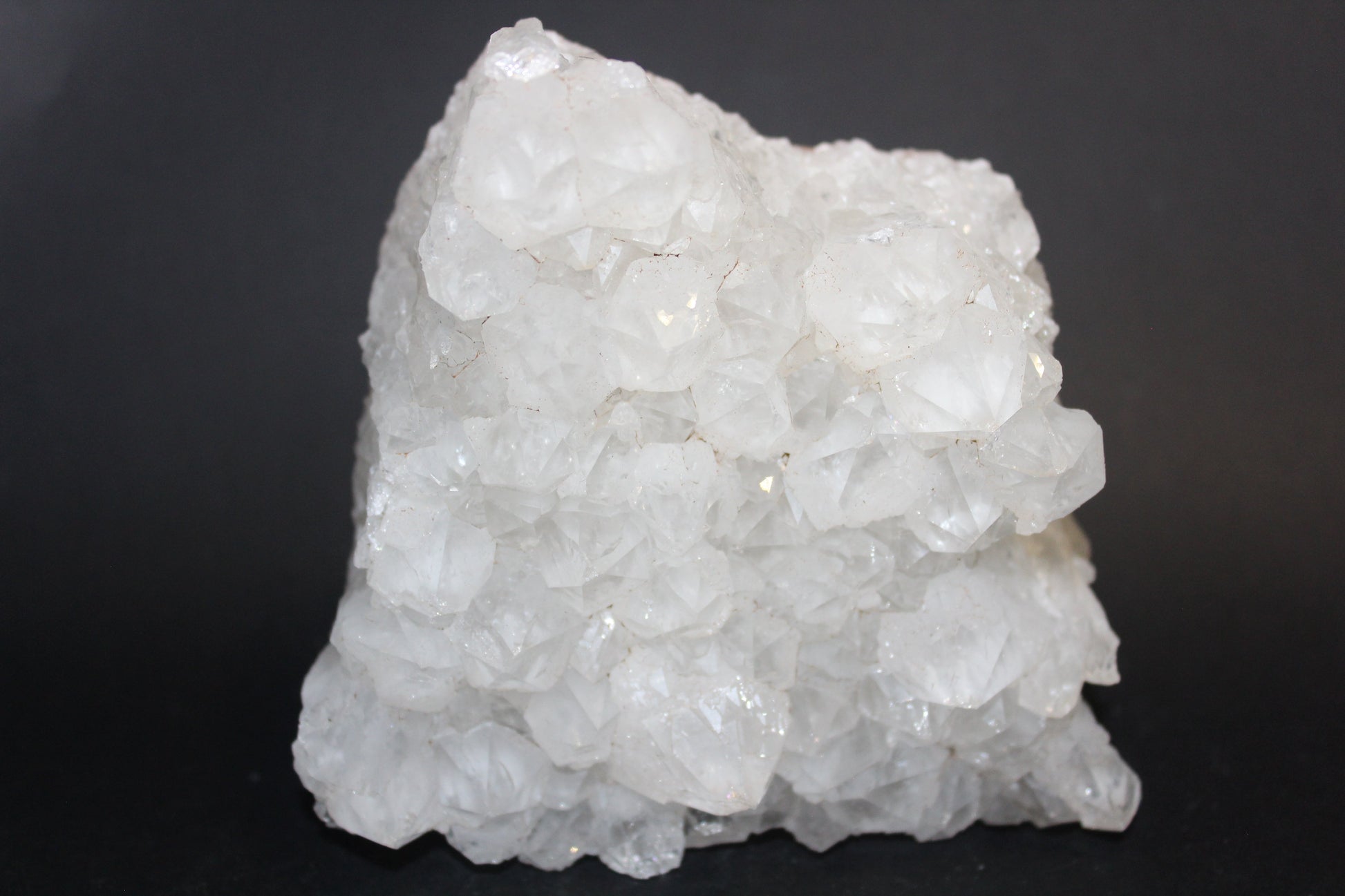 This beautiful Clear Quartz cluster is 120mm (h) x 115mm (w) x 55mm (d) and weighs 1080gms.