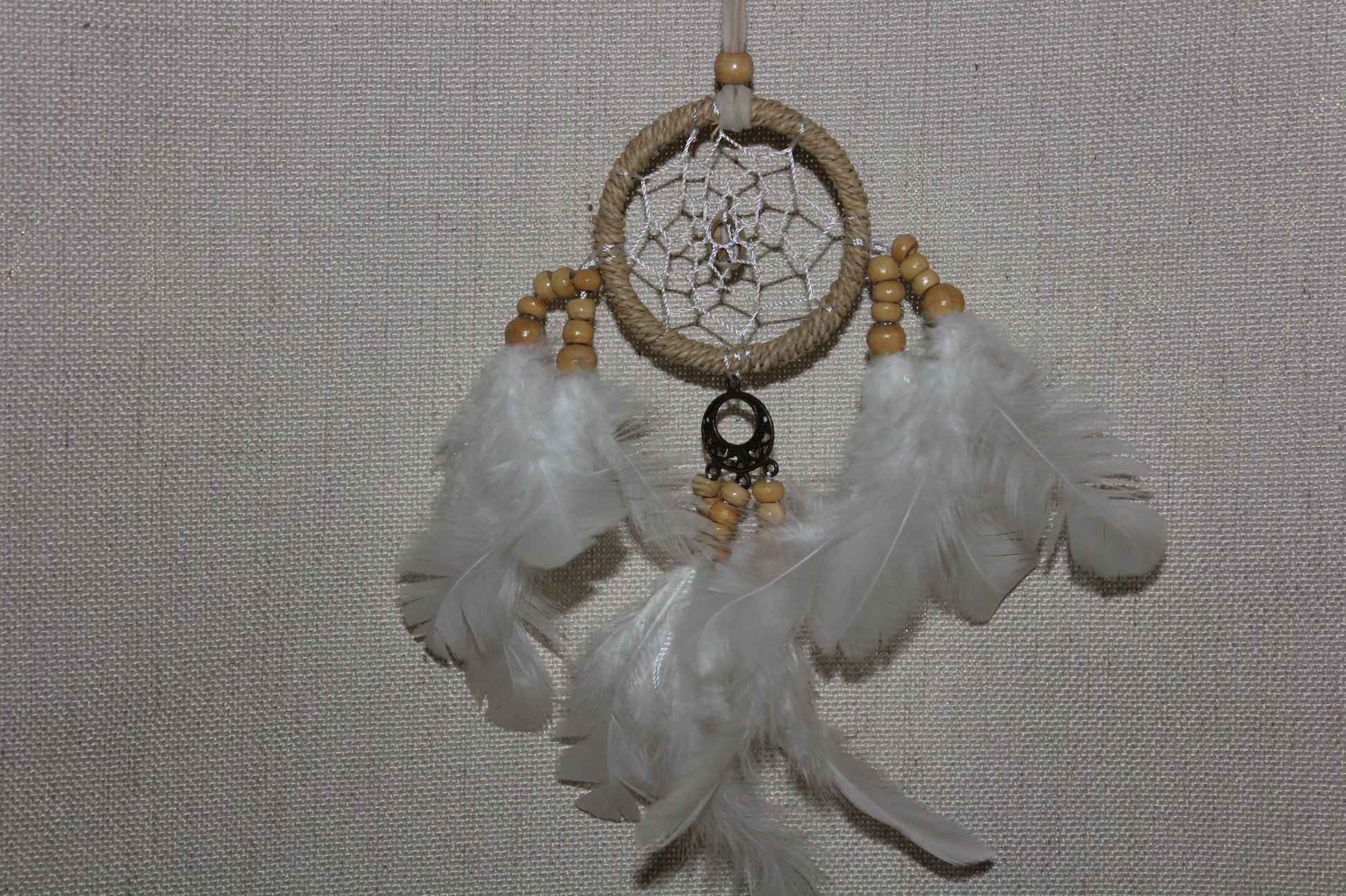This Ratan Dreamcatcher has cowrie shells, timber beads, a metal charm and feathers.