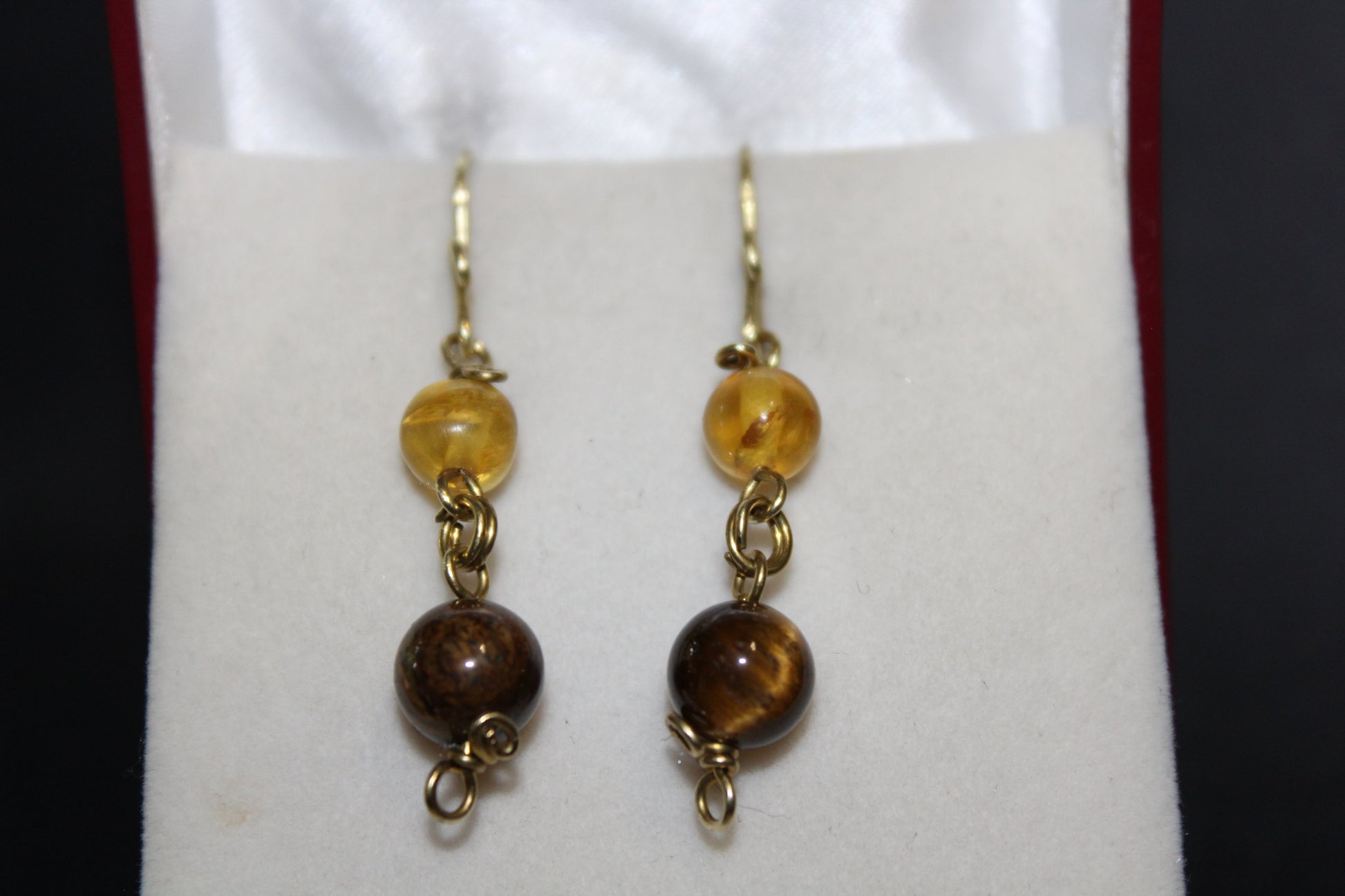 These stunning Amber and Tiger Eye Earrings are created with Brass findings and are presented in an Jewellery Box with the relevant crystal 'property card/s' included.