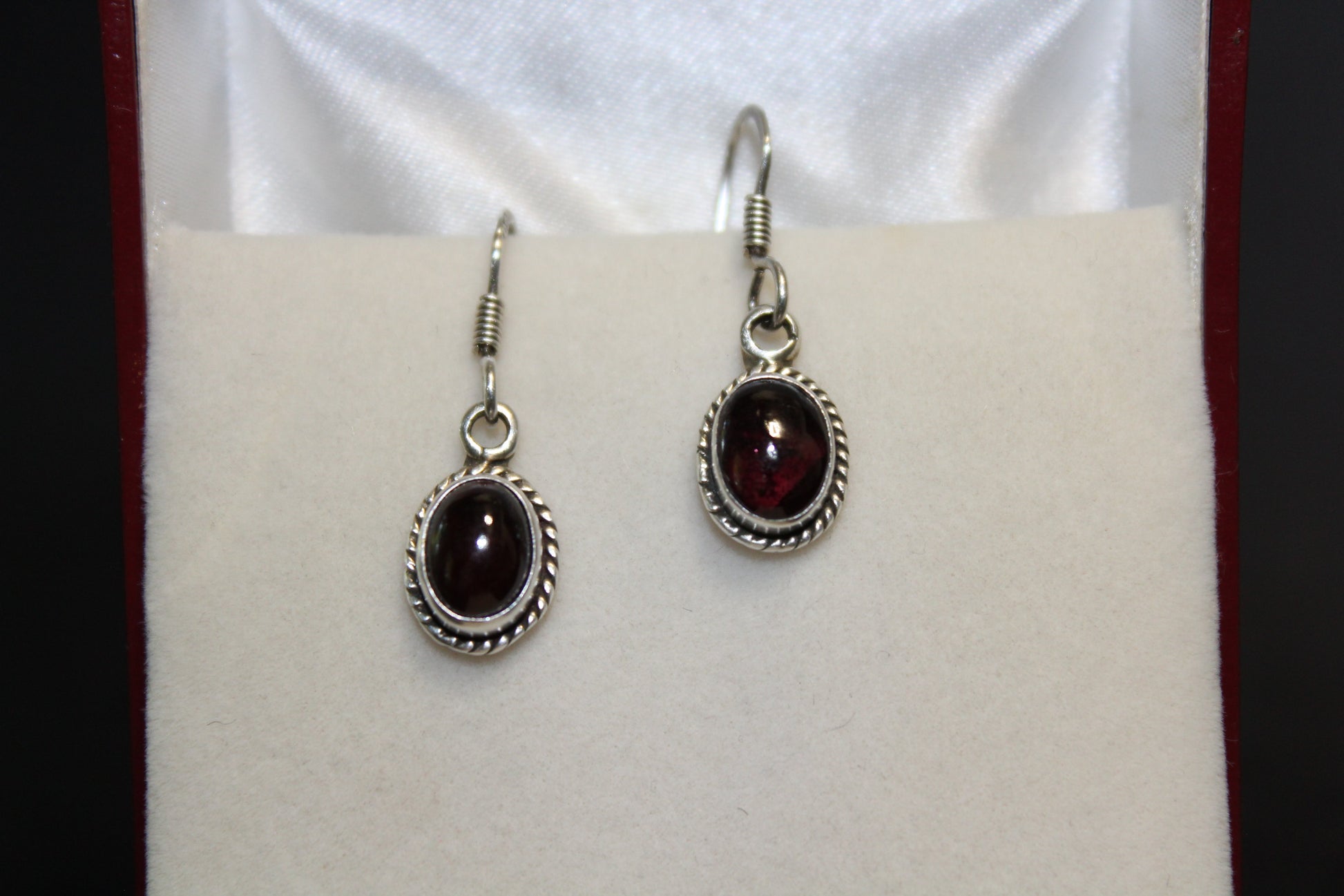 These stunning Garnet Earrings are set in Stirling Silver and are presented in a Jewellery Box with the relevant crystal 'property card/s' included.
