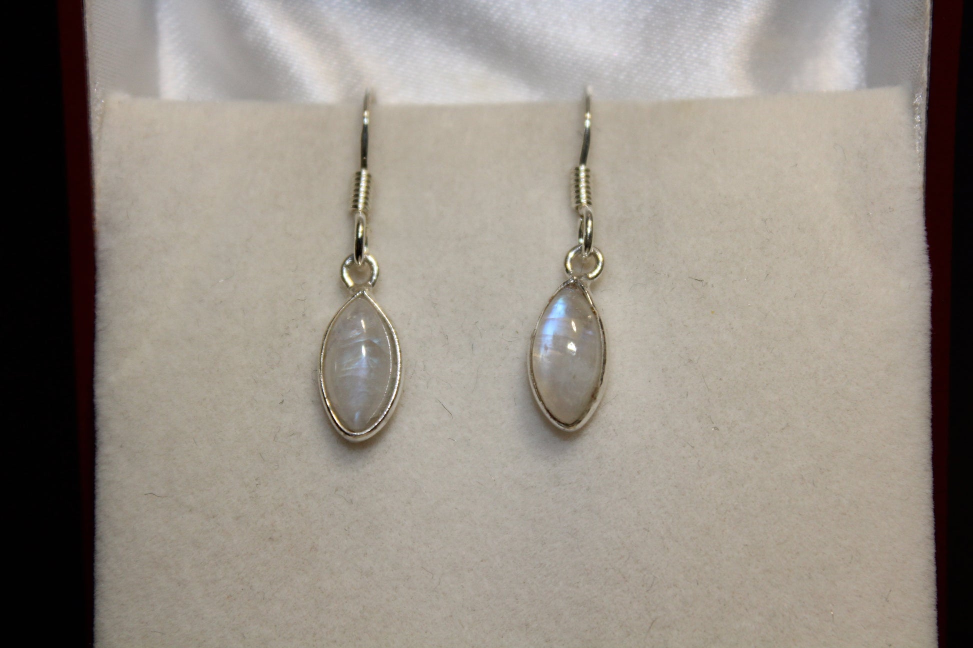 These stunning Rainbow Moonstone Earrings are set in Stirling Silver and are presented in a Jewellery Box with the relevant crystal 'property card/s' included.