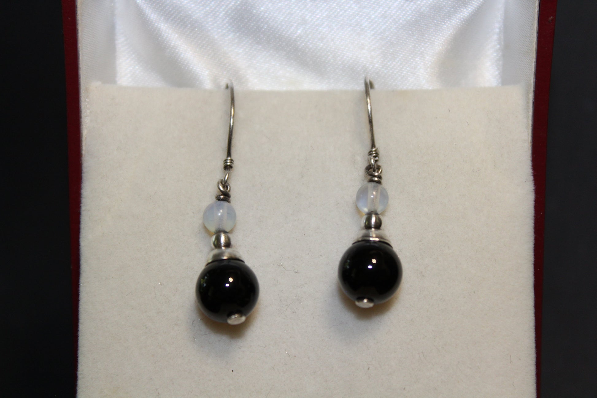 These stunning Moonstone and Onyx Earrings are set with Stirling Silver findings and are presented in a Jewellery Box with the relevant crystal 'property card/s' included.