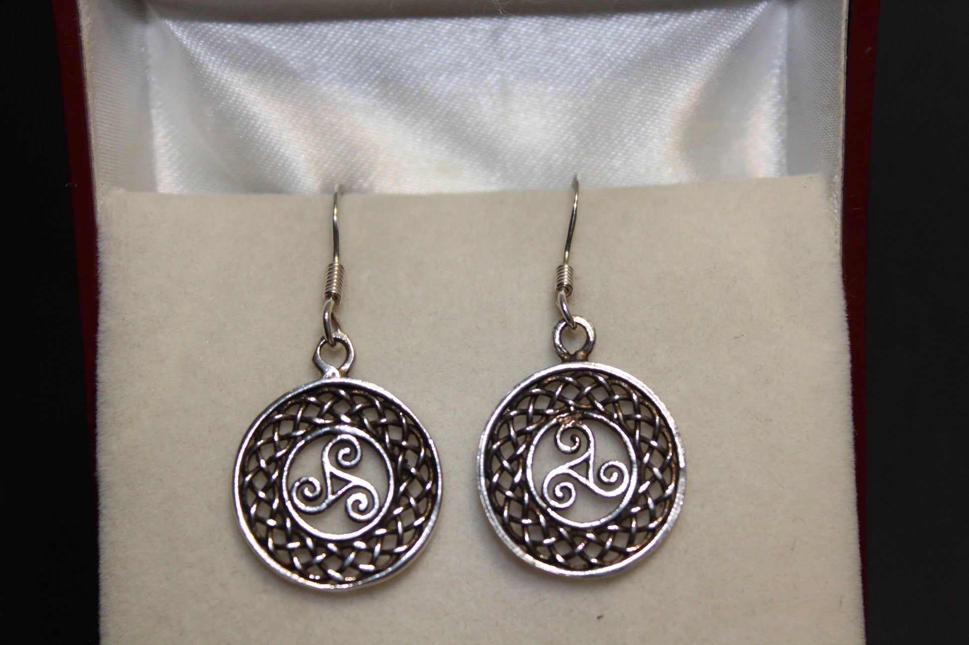 These beautiful Celtic Spiral Knot (Triskelion) Earrings are set in Stirling Silver and are presented in a Jewellery Box.