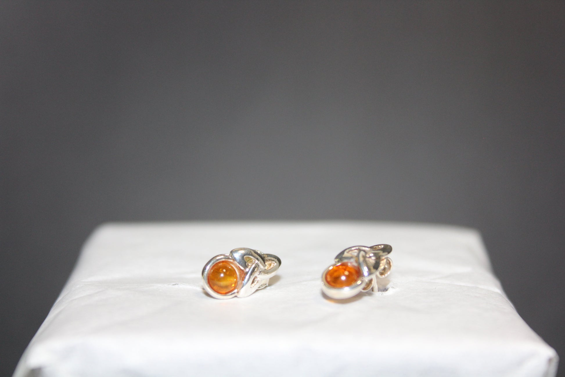These beautiful Amber Studs are set with a Celtic Trinity Knot (Triquetra) in Stirling Silver and presented in a Jewellery Box with the crystal 'property card/s' included.