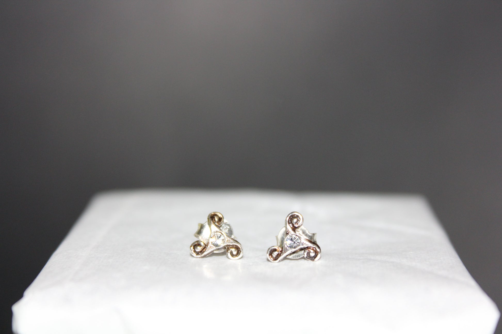 These beautiful Celtic Triple Spiral Knot (Triskelion) Studs are set in Stirling Silver with Cubic Zirconia and presented in a Jewellery Box.