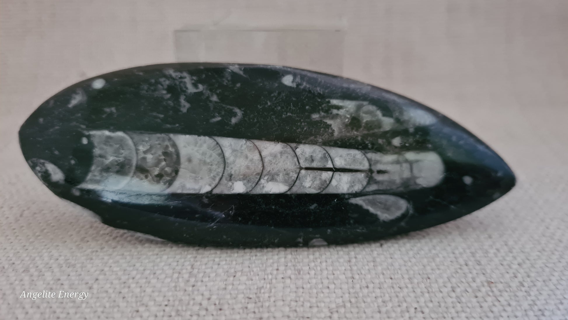 Orthoceras was an ancient mollusc that lived more than 450-480 million years ago. The name means straight horn, referring to the characteristic long, straight, conical shell.