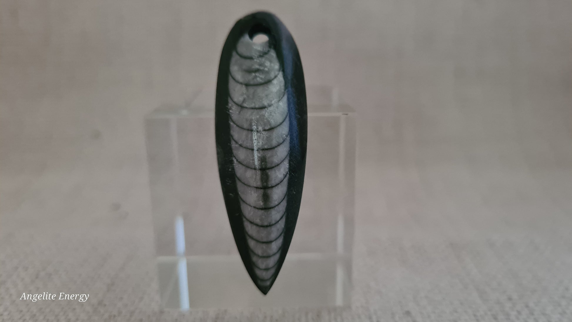 Orthoceras was an ancient mollusc that lived more than 450-480 million years ago. The name means straight horn, referring to the characteristic long, straight, conical shell. This fossil has been drilled, thread cotton through it and wear as a necklace.