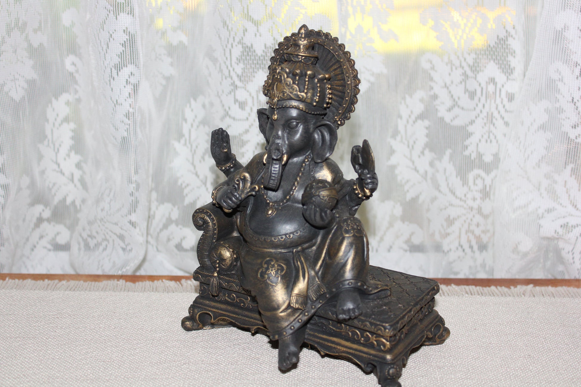 Ganesha - sitting on lounge - bronze look