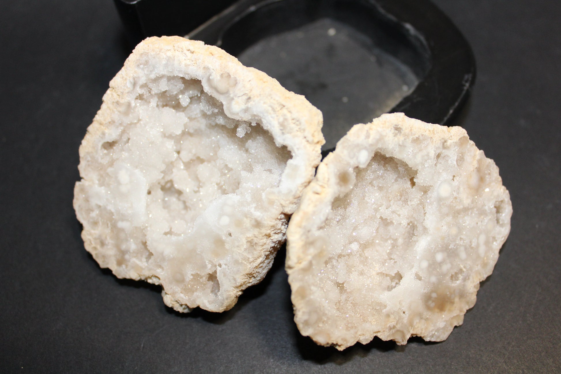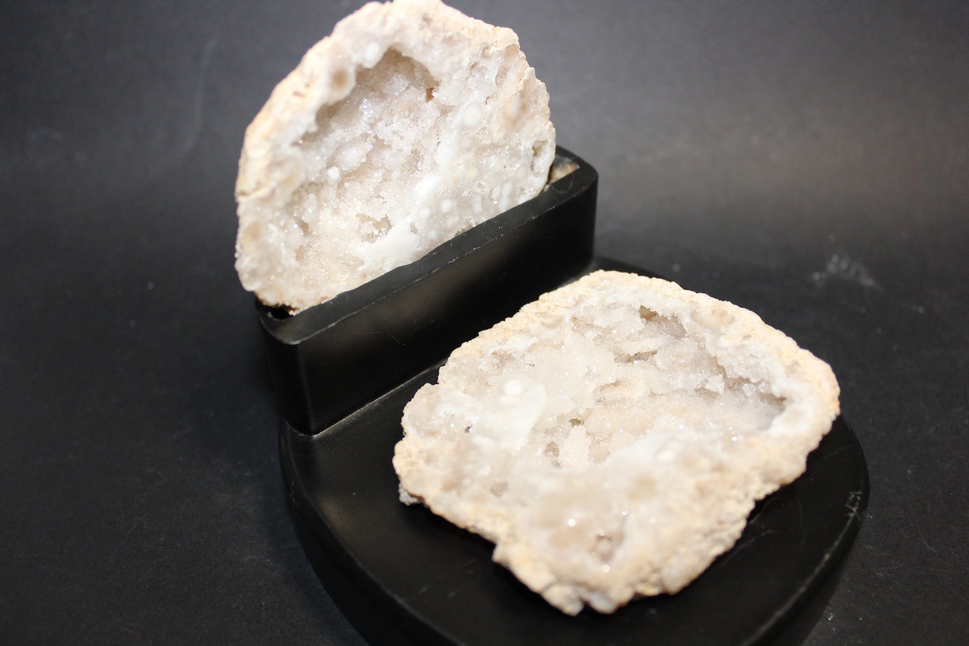 Geode - Clear Quartz (polished, full geode in timber stand) - med/lge