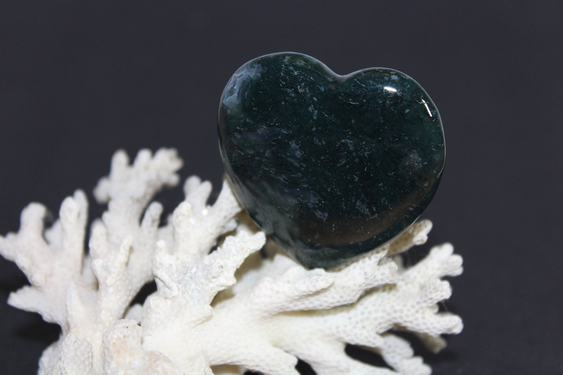 The heart symbol represents love, friendship and compassion. This beautiful Moss Agate Heart is 40mm (h) x 40mm (w) and 27gms.
