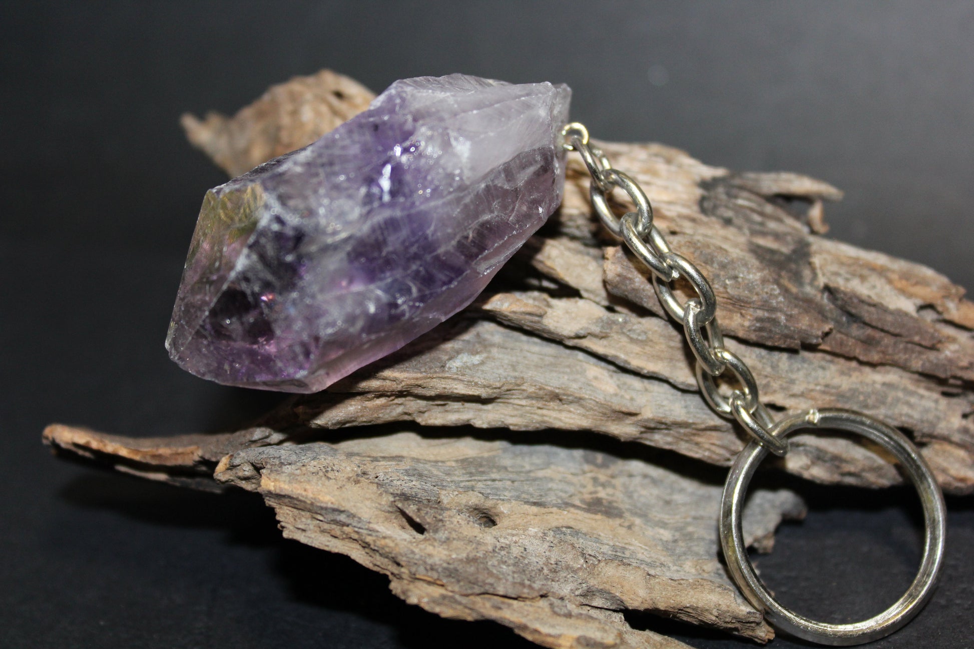 This Amethyst Point Keyring is 120mm (l) x 20mm (w) and is presented in an Organza Bag with the relevant crystal 'property card'.