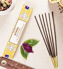 Myrrh incense is to be burnt at a quiet time for purification, meditation and protecting oneself from evil. The gum resin from the Commiphora tree is one of the most popular scents in aromatherapy with earthy, cleansing tones. It promotes good vibrations as if you are under a meditative spell.