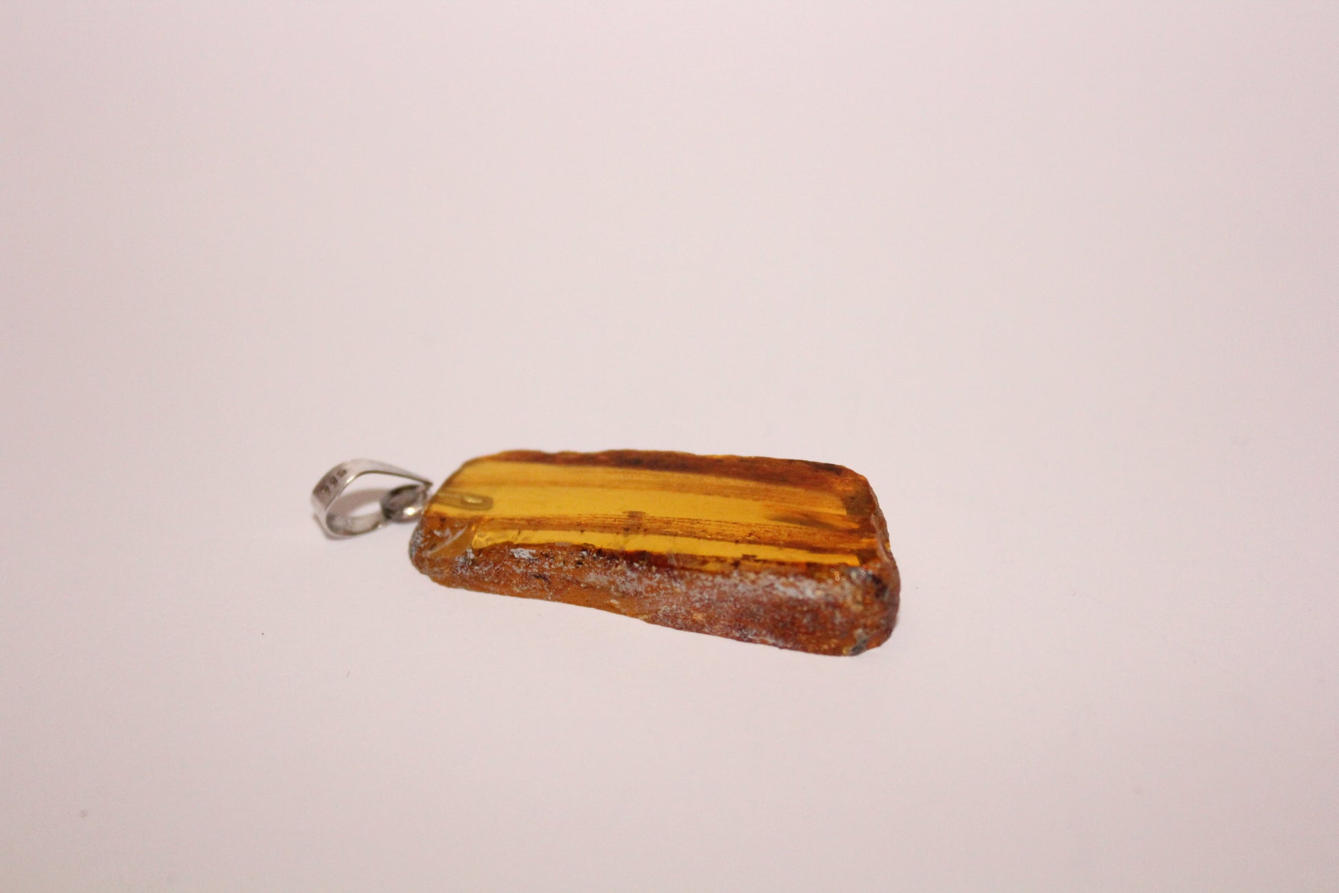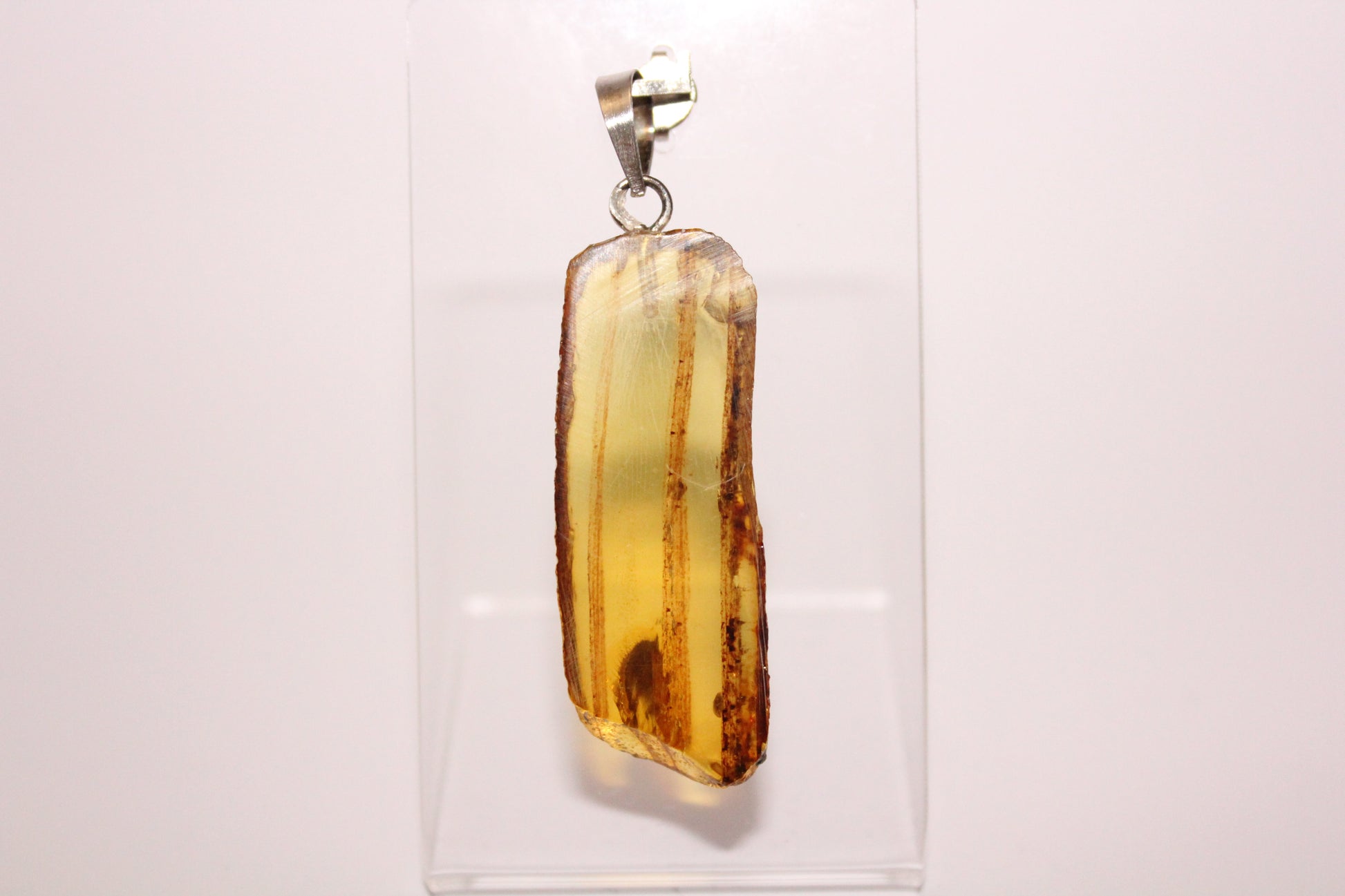 This beautiful Amber Pendant is set in Stirling Silver and is approx - 55mm (l) x 15mm (w).
