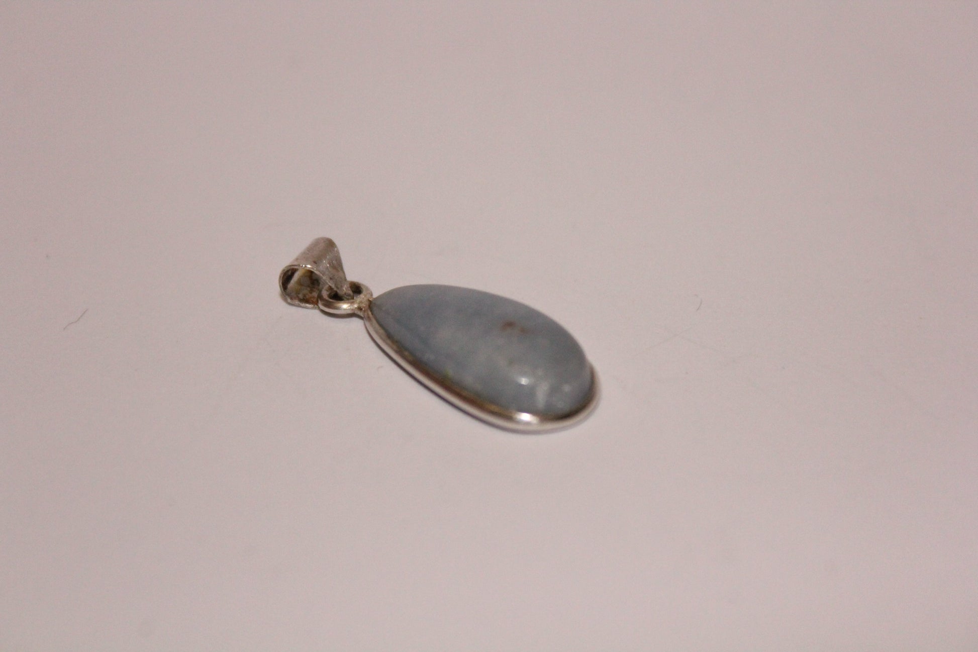 This beautiful Angelite Pendant is set in Stirling Silver and is approx - 30mm (l) x 15mm (w).