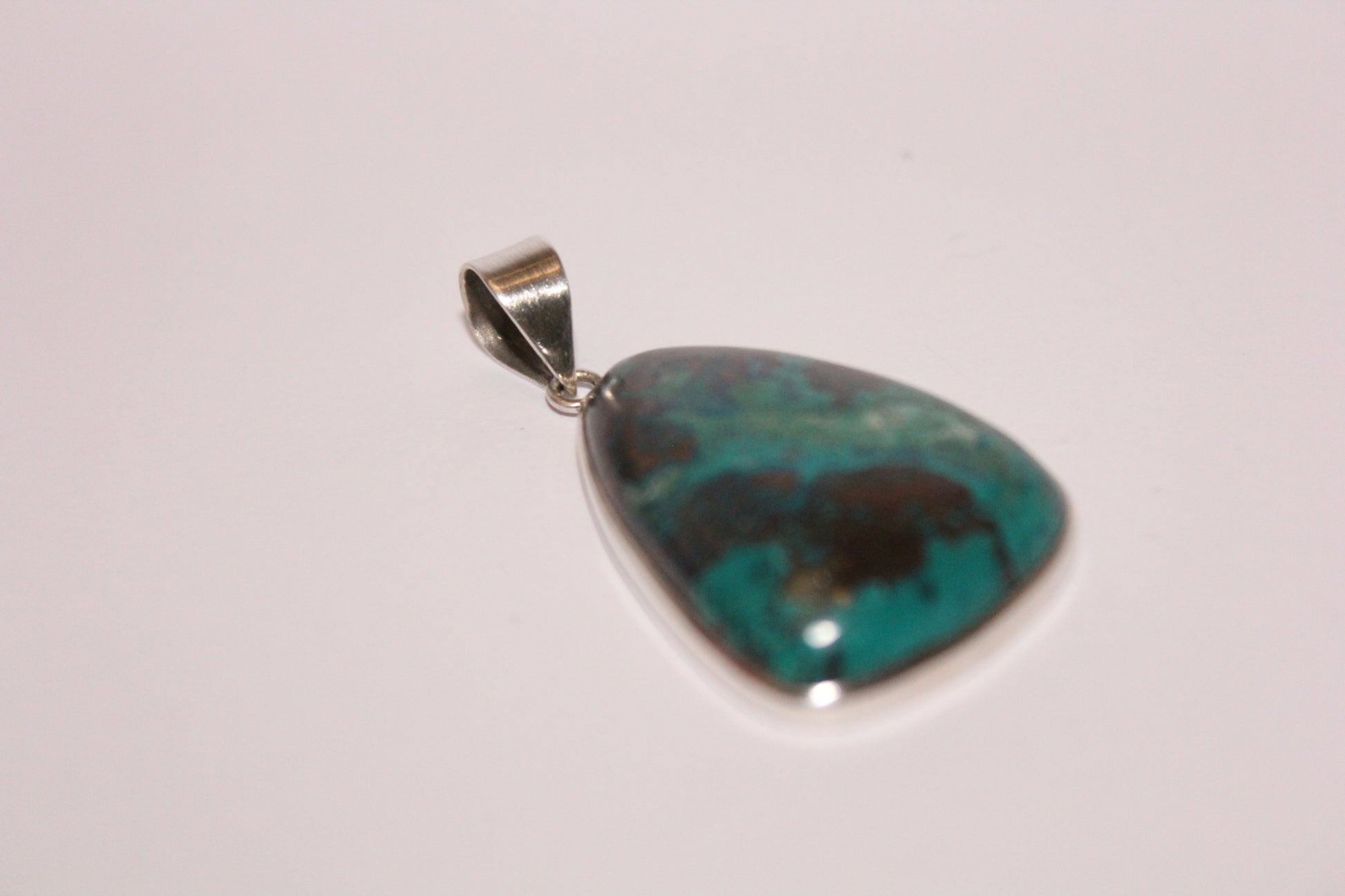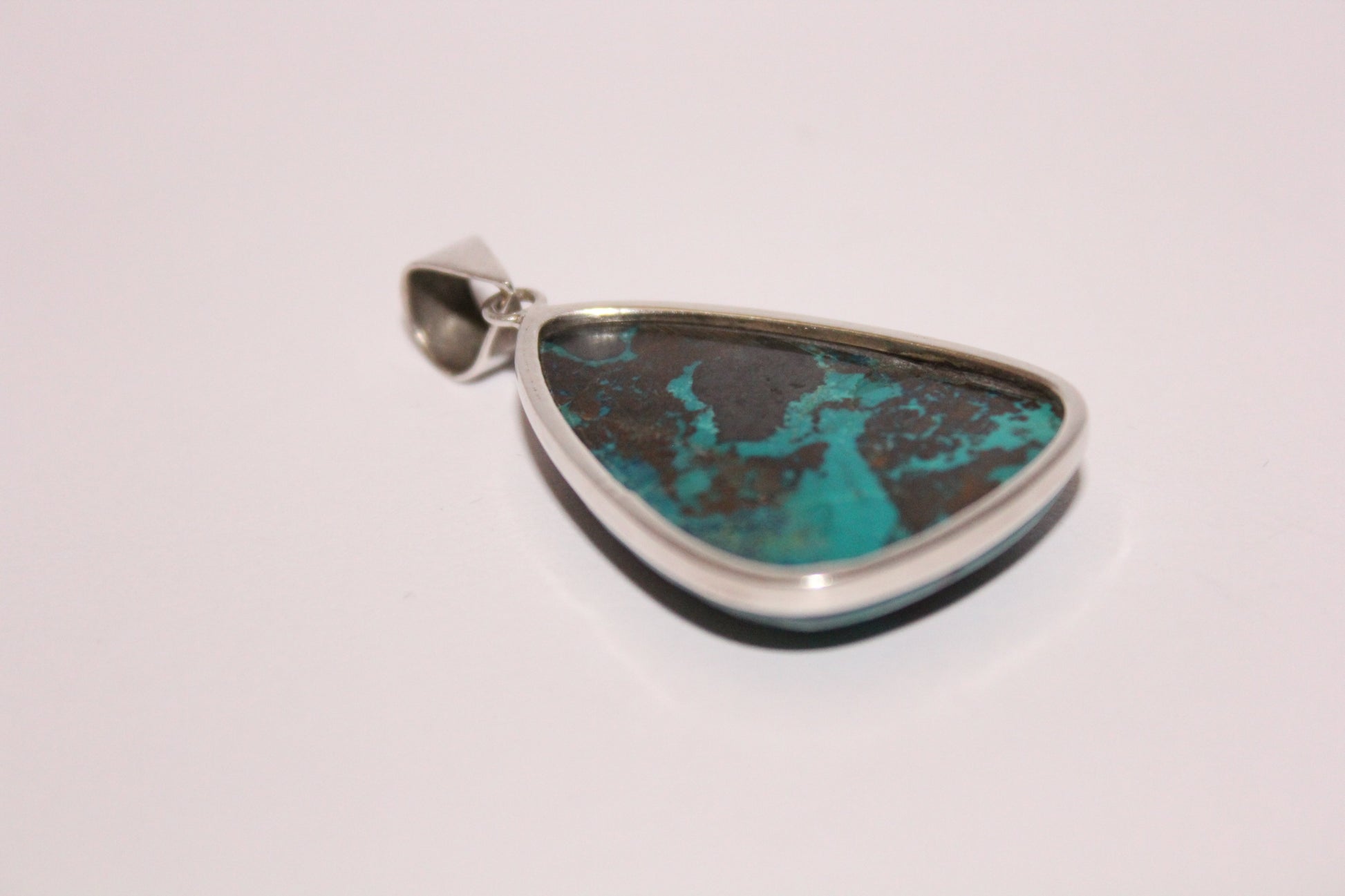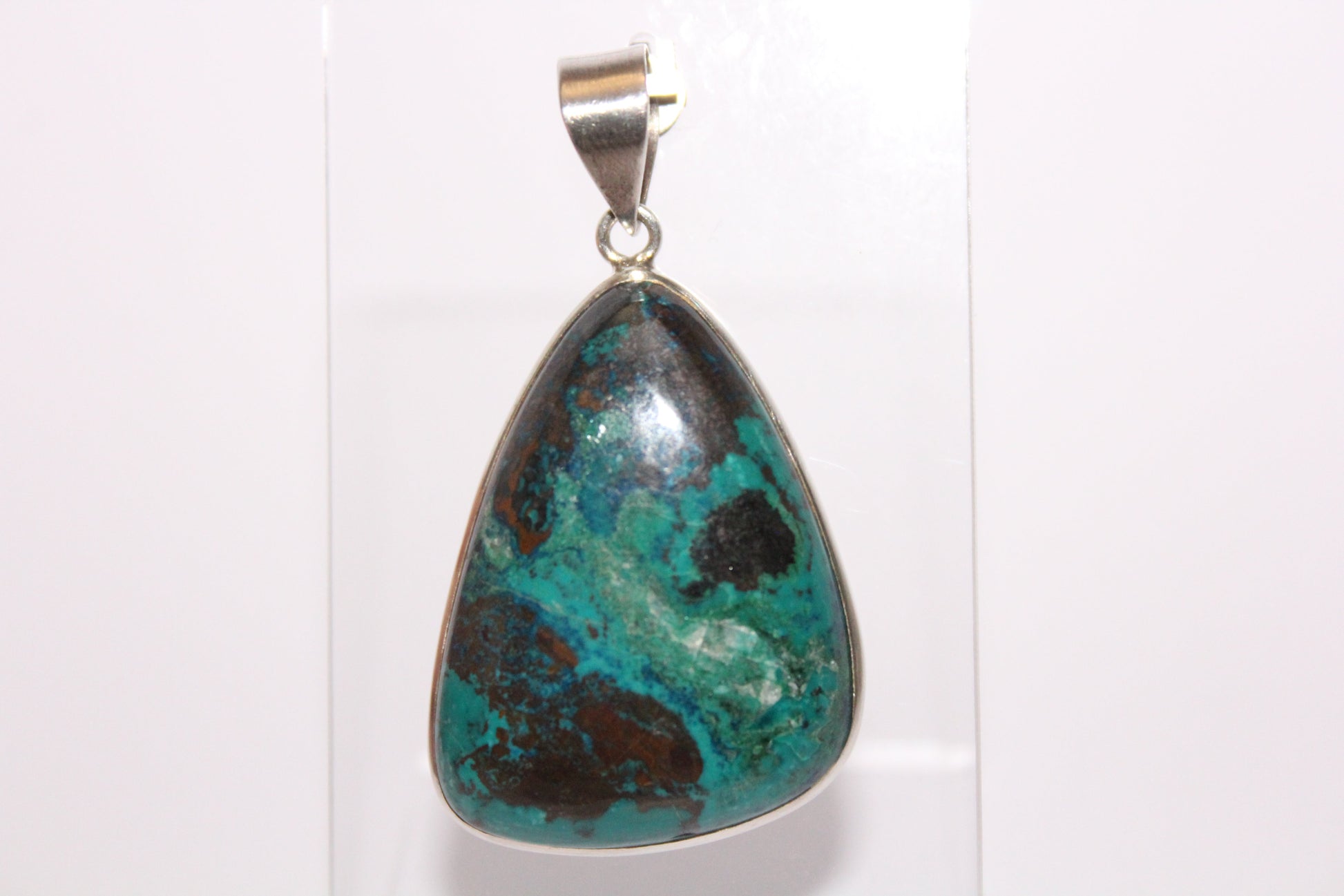 This beautiful Azurite With Malachite Pendant is set in Stirling Silver and is approx - 50mm (l) x 30mm (w).