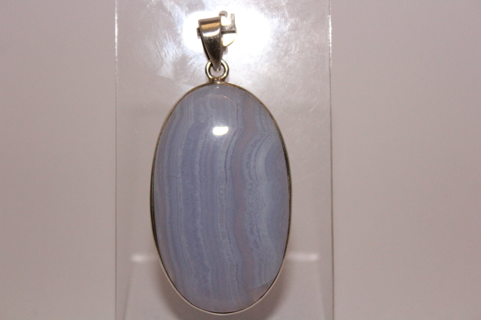 This beautiful Blue Lace Agate Pendant is set in Stirling Silver and is approx - 55mm (l) x 25mm (w).