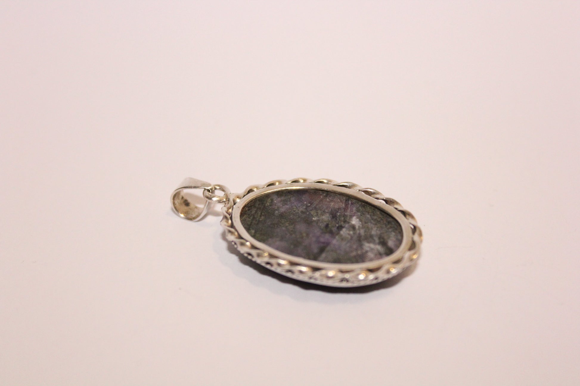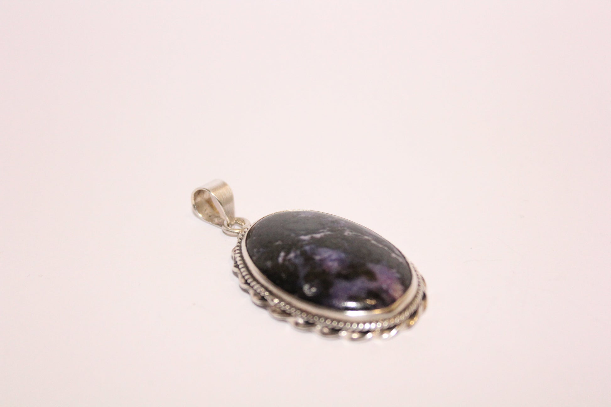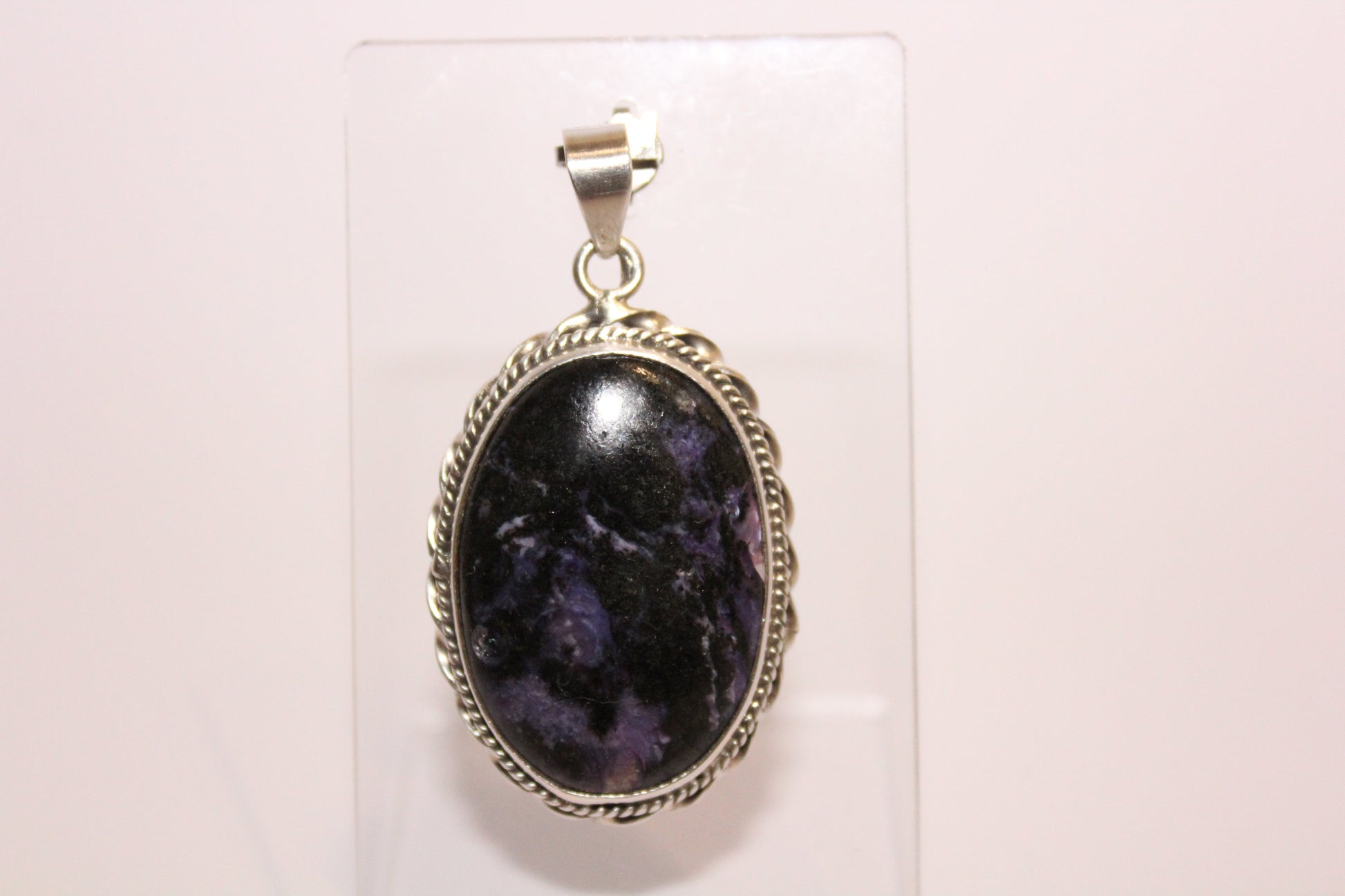 This beautiful Charoite Pendant is set in Stirling Silver and is approx - 50mm (l) x 30mm (w).