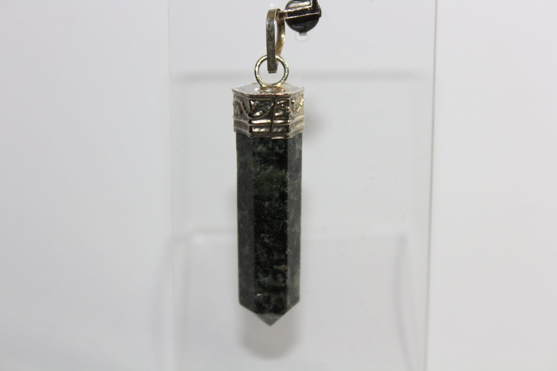 This beautiful Chrysocolla generator style pendant is approx - 45mm (l) x 10mm (w) and includes a free, adjustable black cotton necklace..