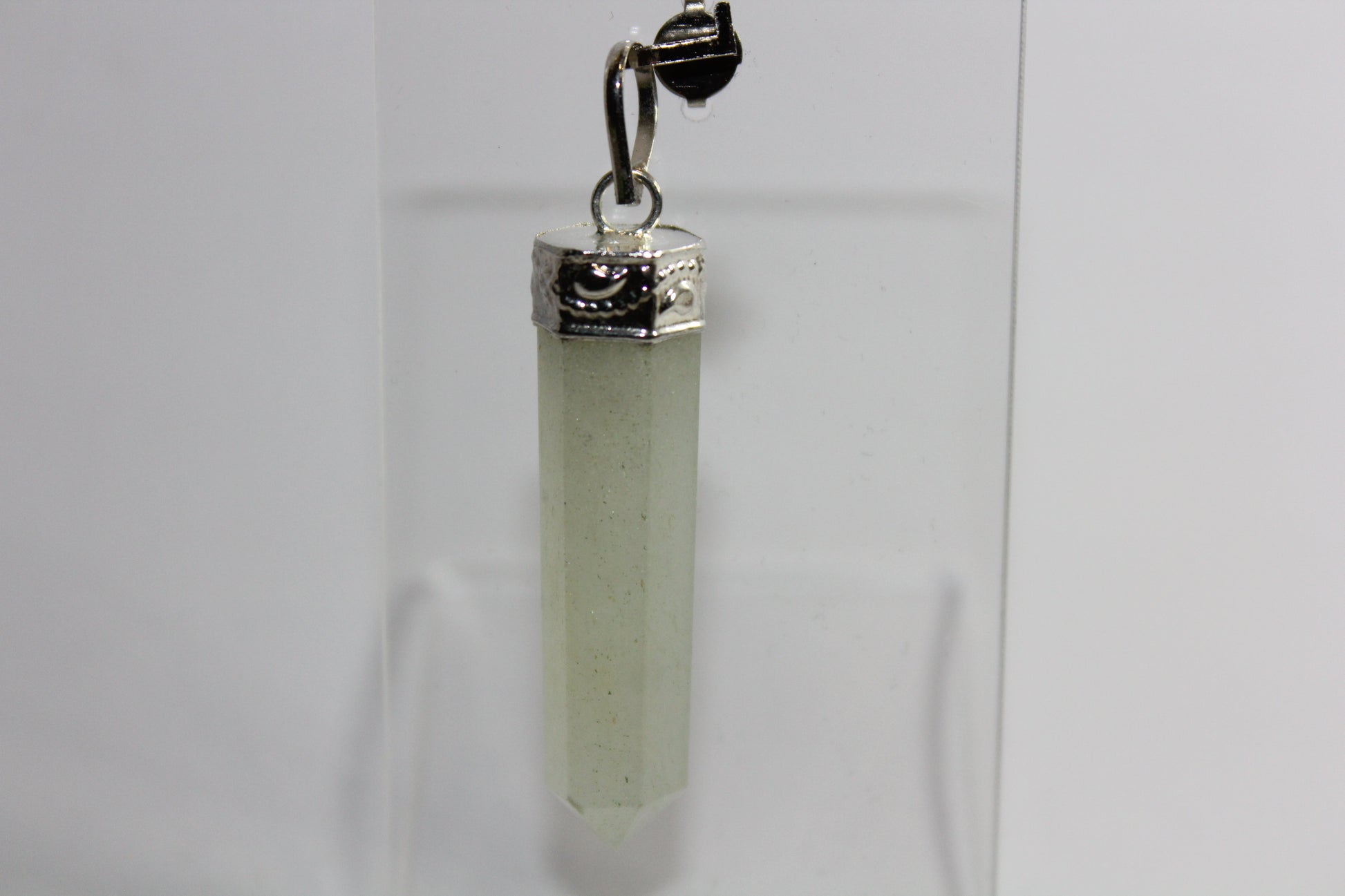 This beautiful Green Aventurine generator style pendant is approx - 45mm (l) x 10mm (w) and includes a free, adjustable black cotton necklace..