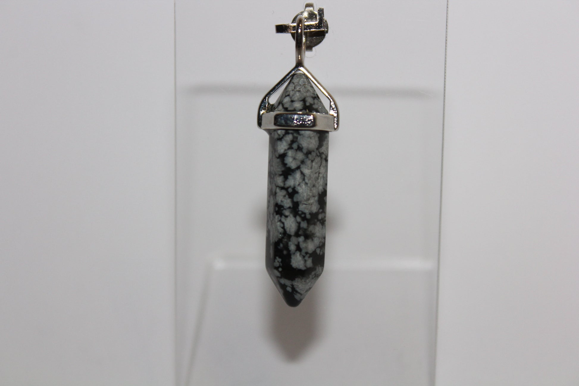 Pendant - Dbl Terminated - Snowflake Obsidian - sml