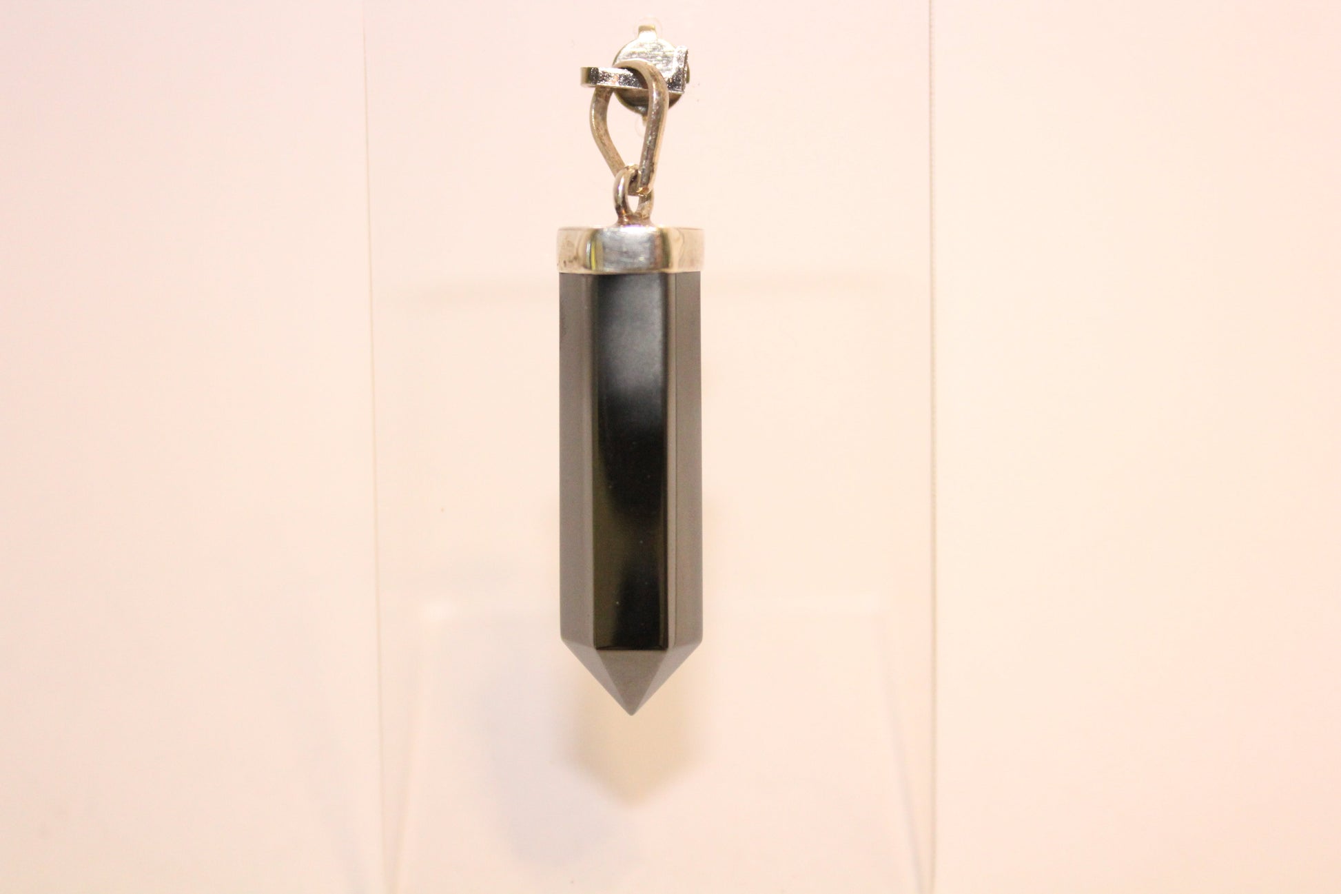 This beautiful Hematite Generator Pendant is set in Stirling Silver and is approx - 45mm (l) x 10mm (w).