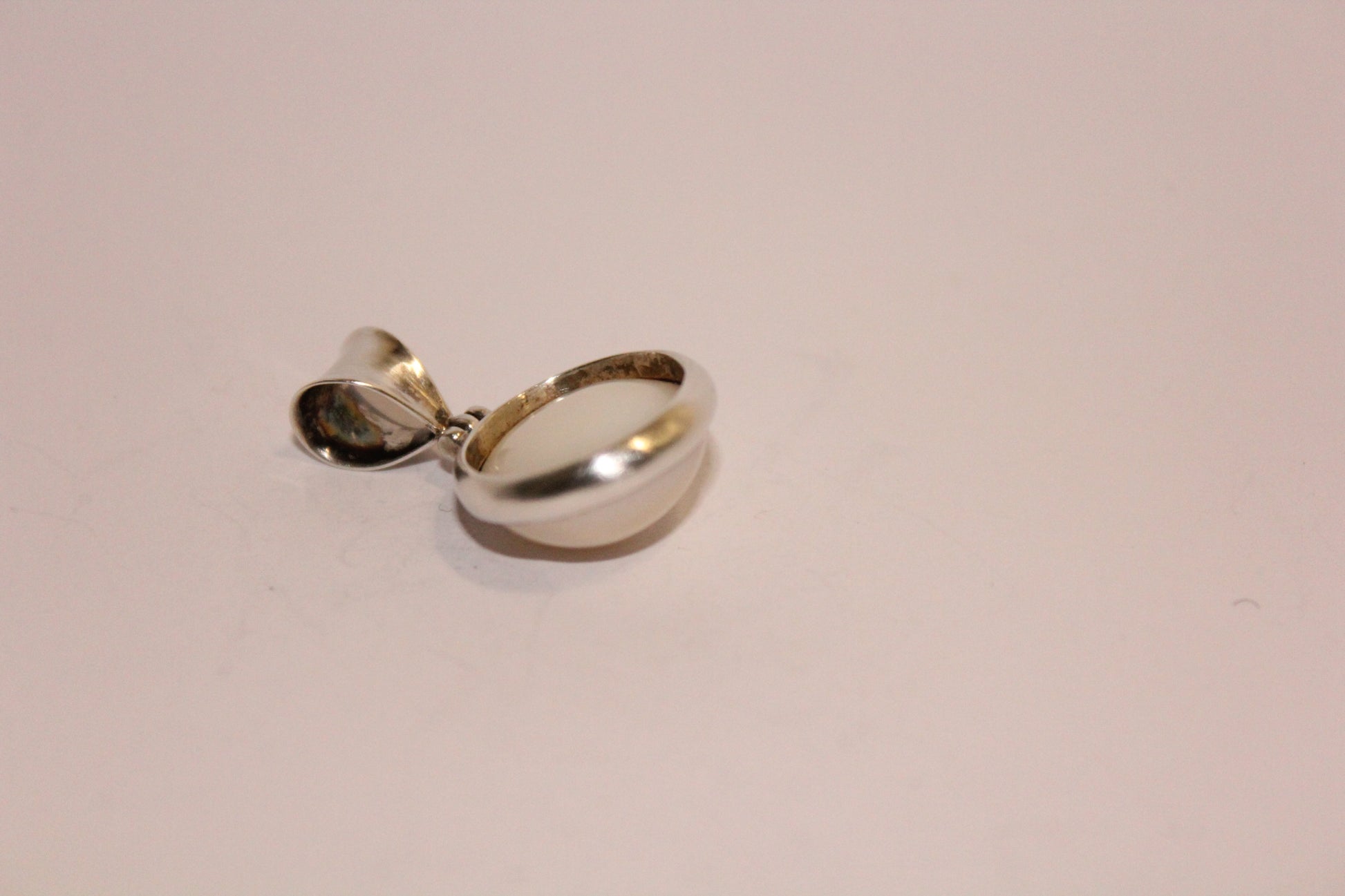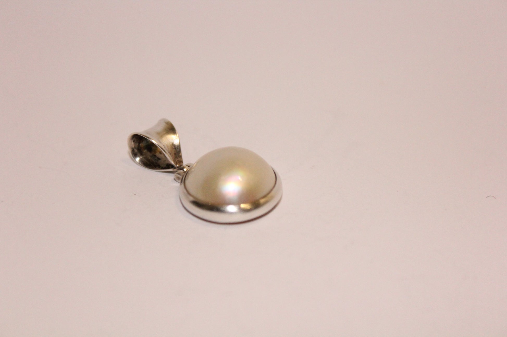 This beautiful White Mabe Pearl Pendant is set in Stirling Silver and is approx - 30mm (l) x 15mm (w).
