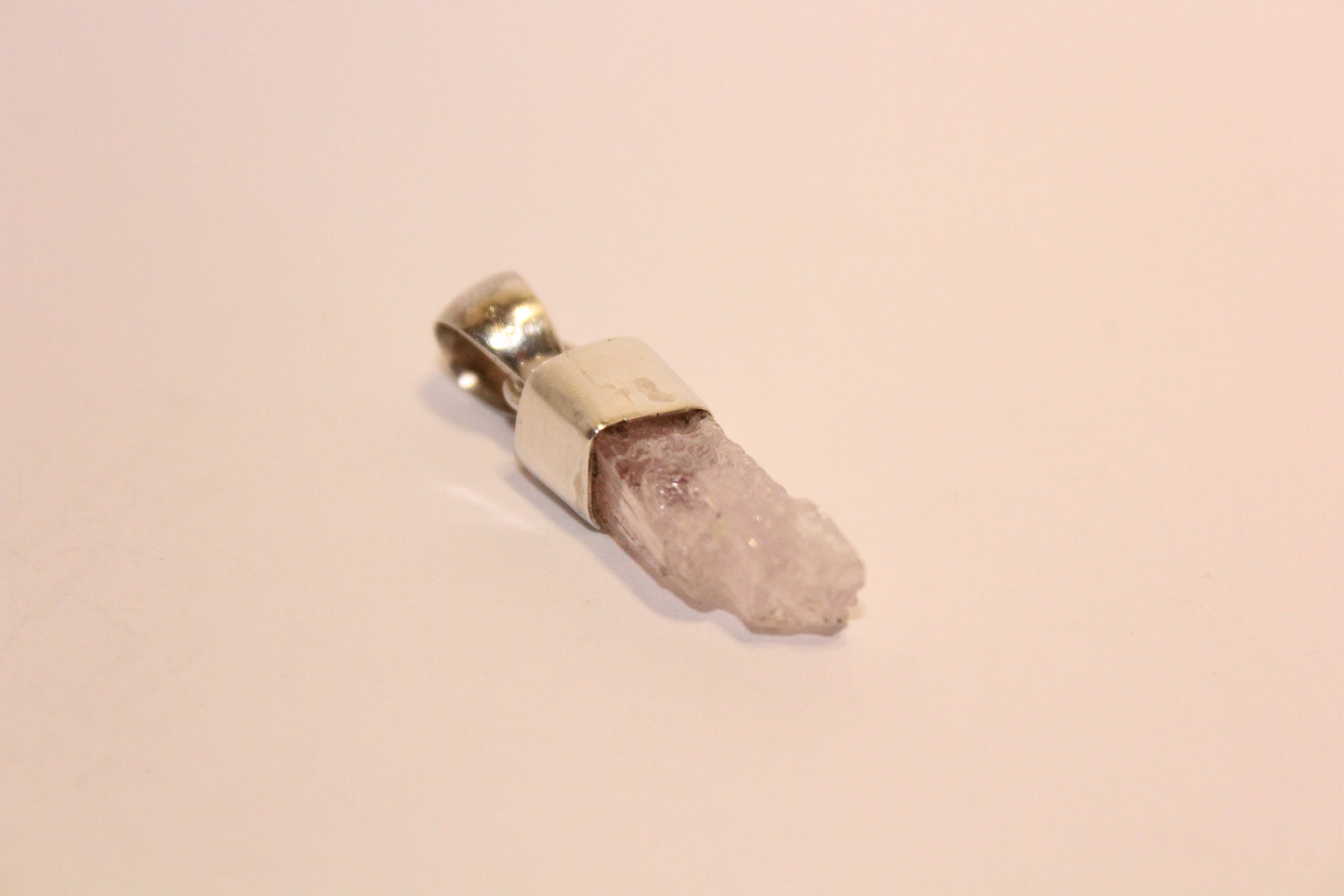 This beautiful Morganite Pendant is set in Stirling Silver and is approx - 40mm (l) x 10mm (w).