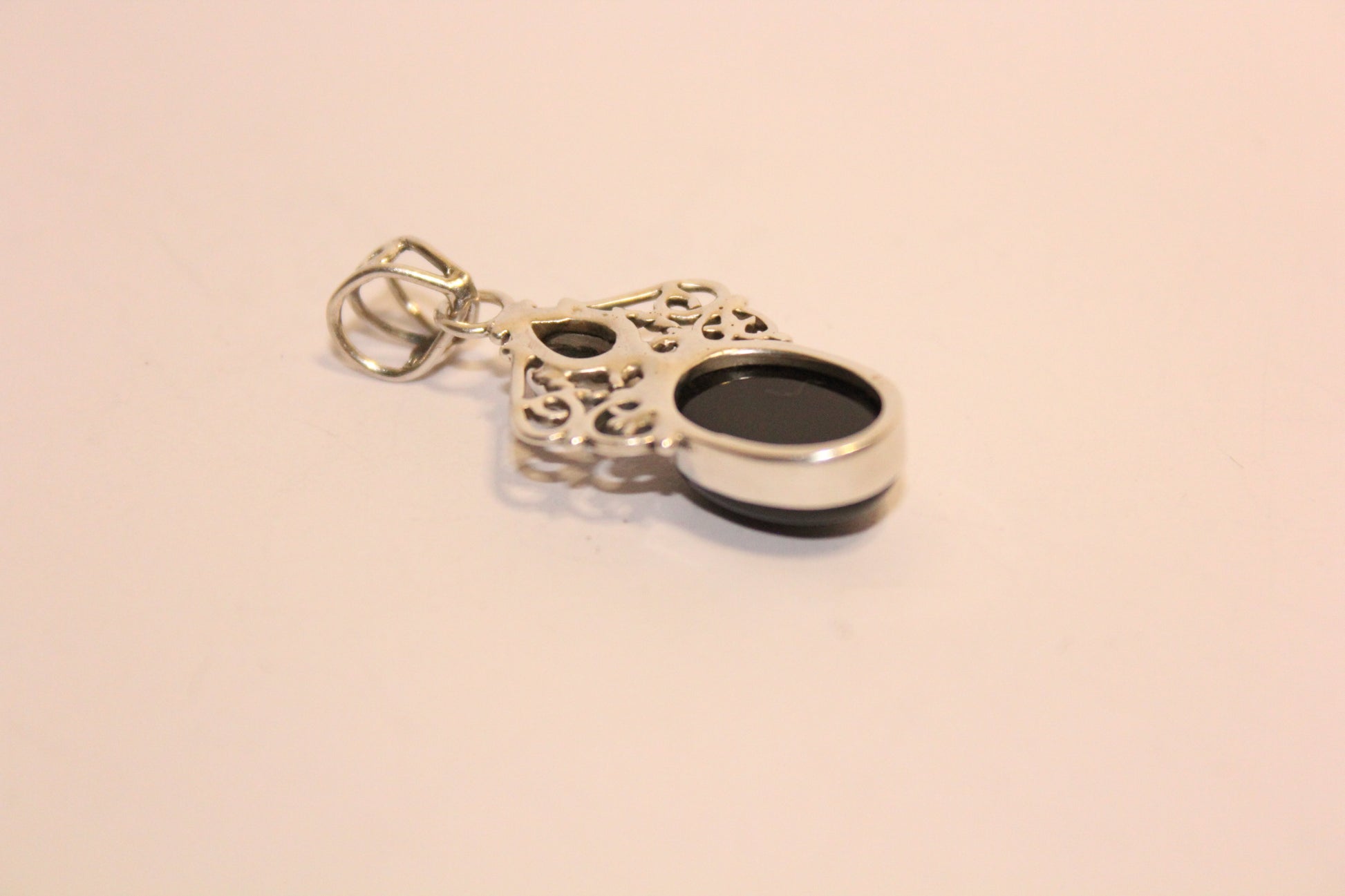 This beautiful Obsidian Pendant is set in Stirling Silver and is approx - 40mm (l) x 20mm (w).