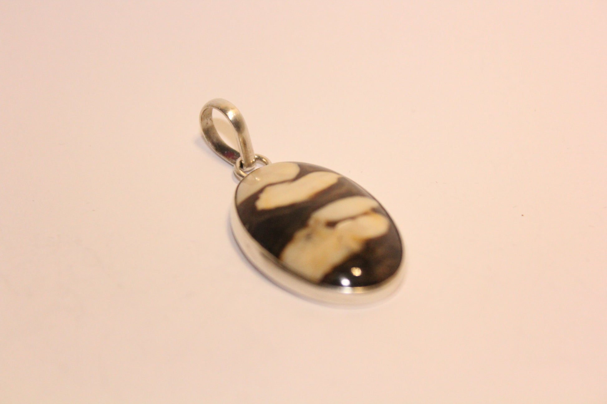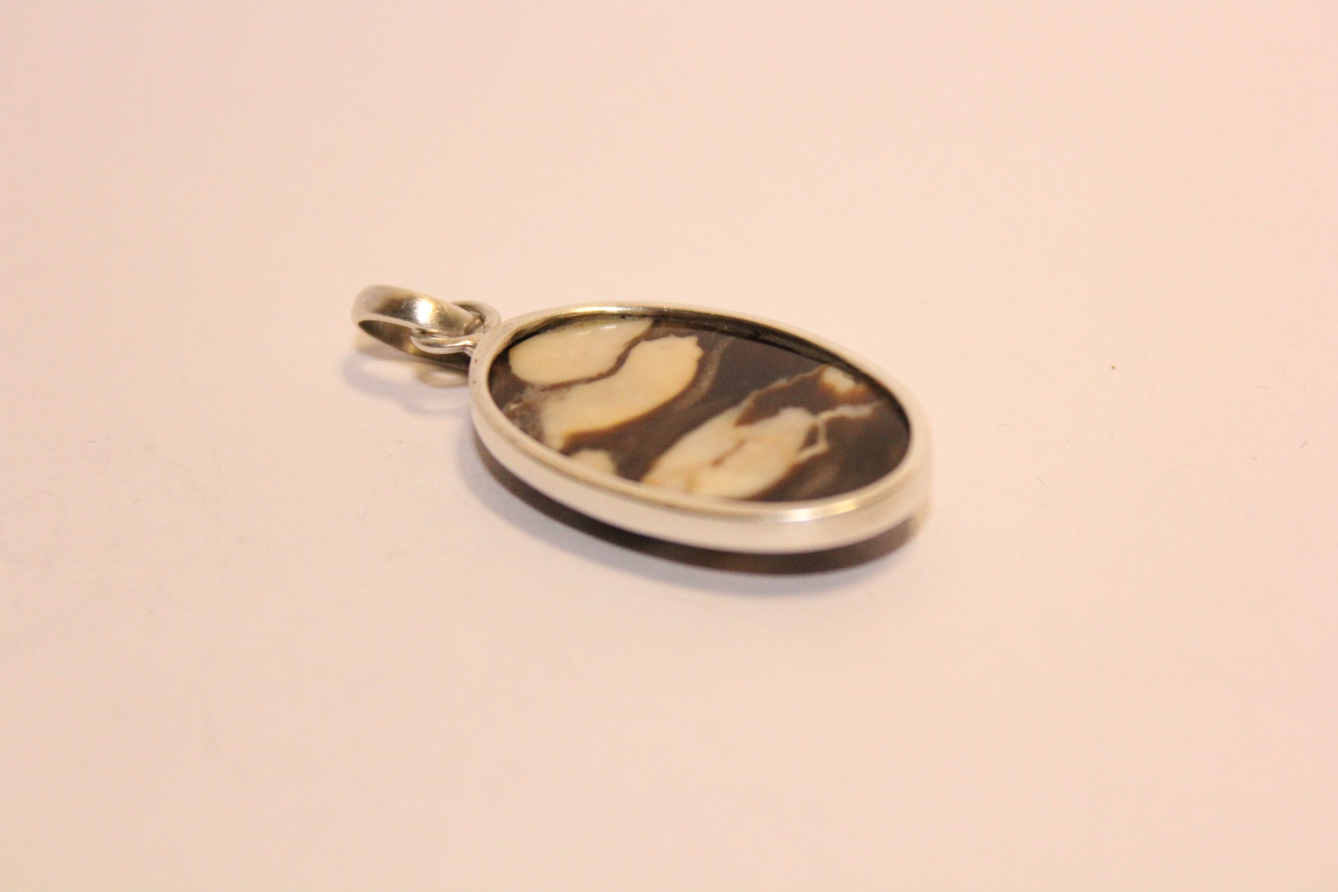 This beautiful Peanut Wood Jasper Pendant is set in Stirling Silver and is approx - 35mm (l) x 25mm (w).