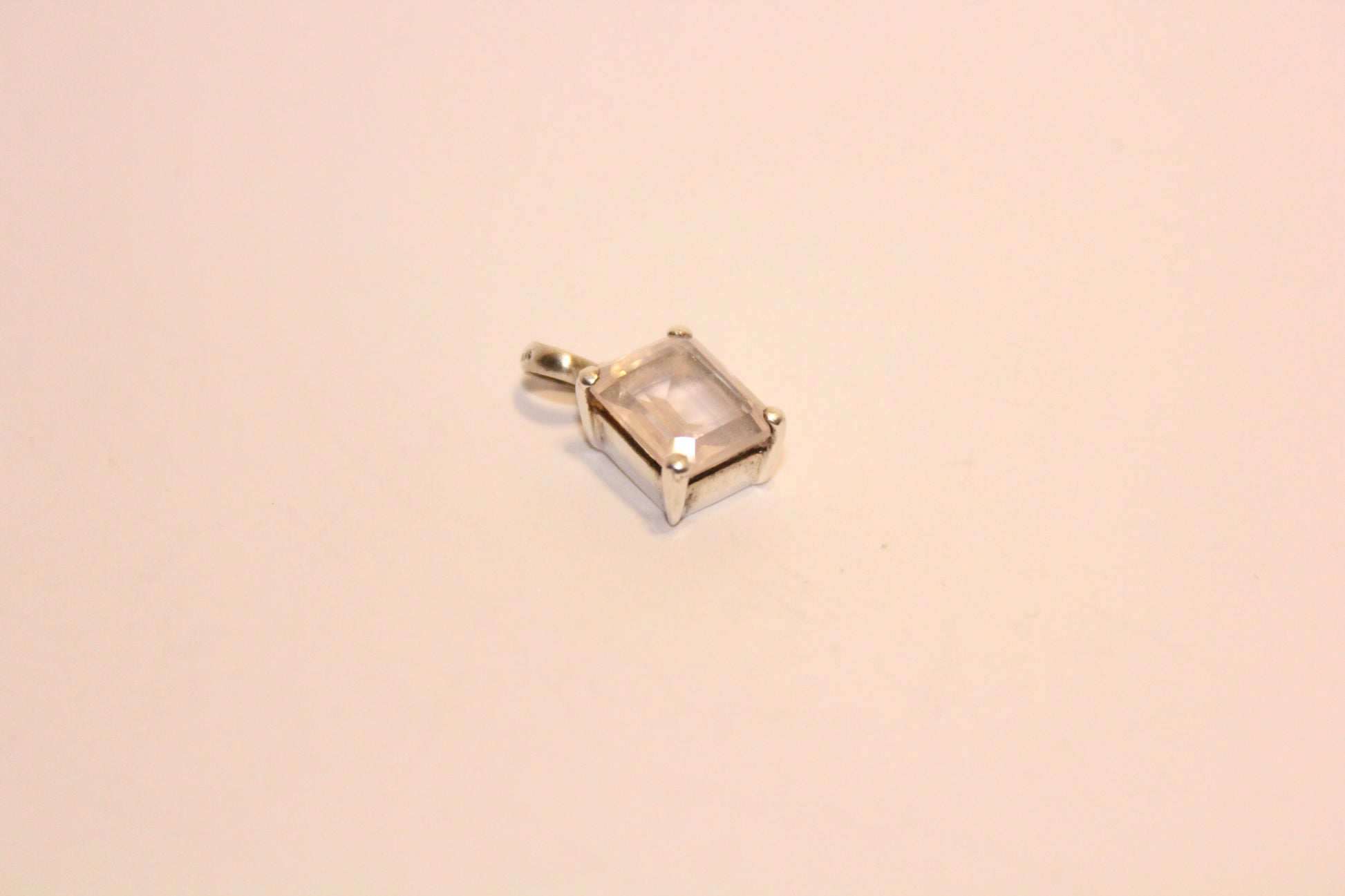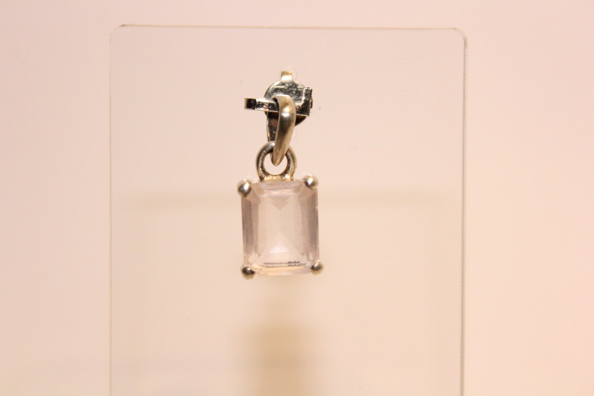 This beautiful Rose Quartz Pendant is set in Stirling Silver and is approx - 15mm (l) x 10mm (w).