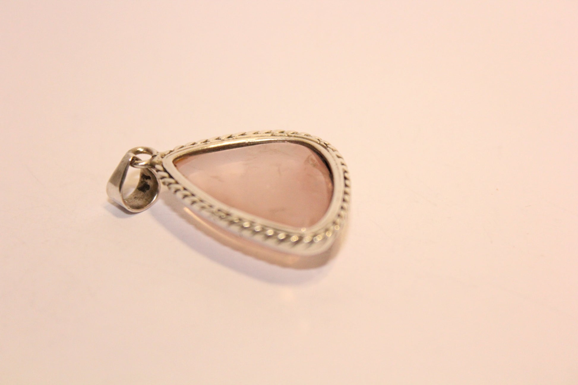 This beautiful Rose Quartz Pendant is set in Stirling Silver and is approx - 40mm (l) x 30mm (w).