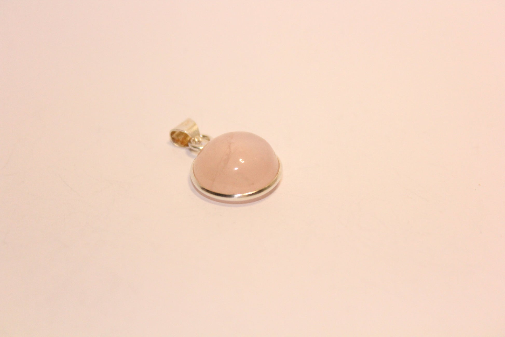 This beautiful Rose Quartz Pendant is set in Stirling Silver and is approx - 25mm (l) x 15mm (w).