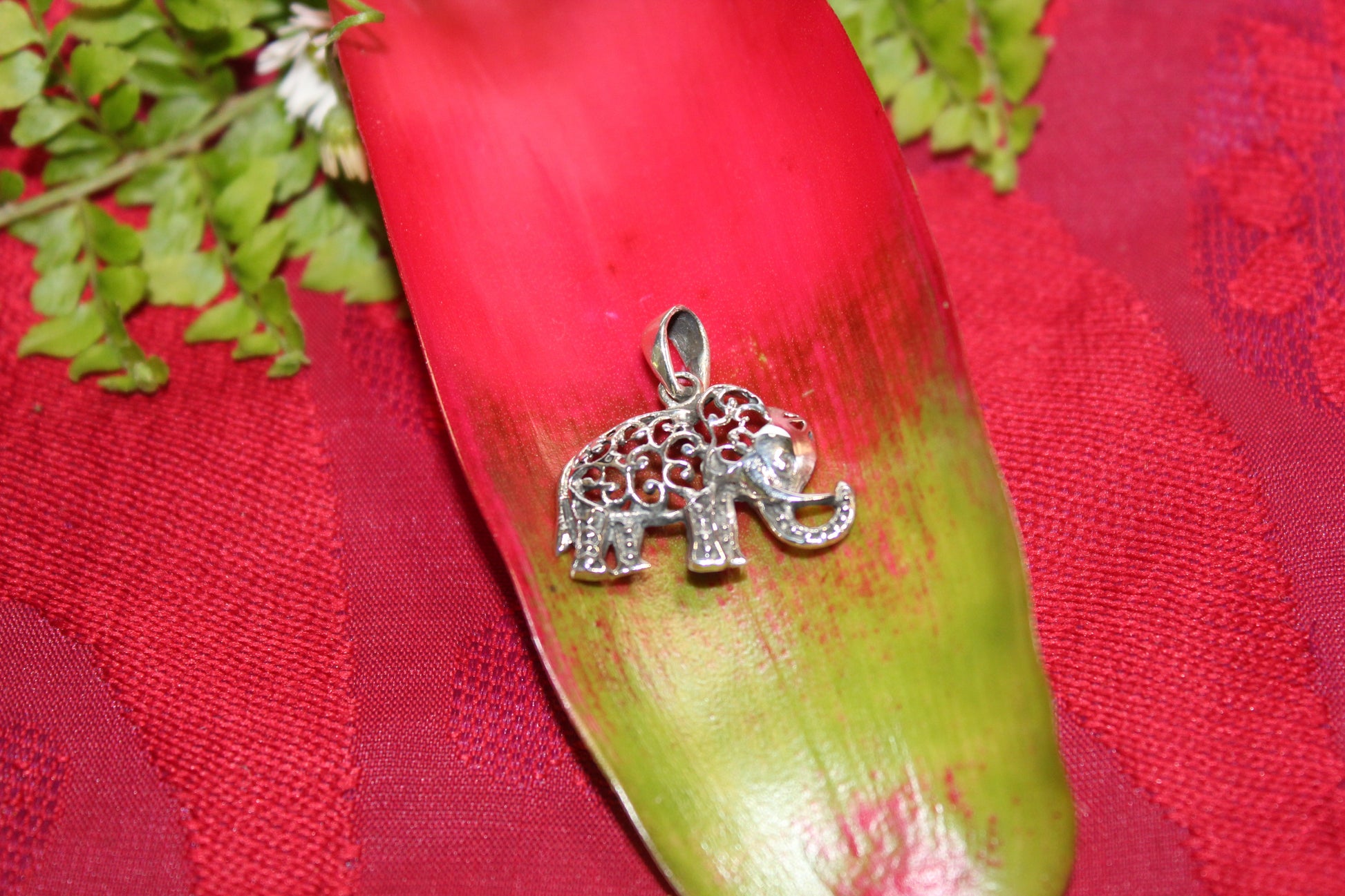This cute Elephant (filigree) Pendant is crafted from 925 Stirling Silver and is 25mm (l) x 25mm (w).