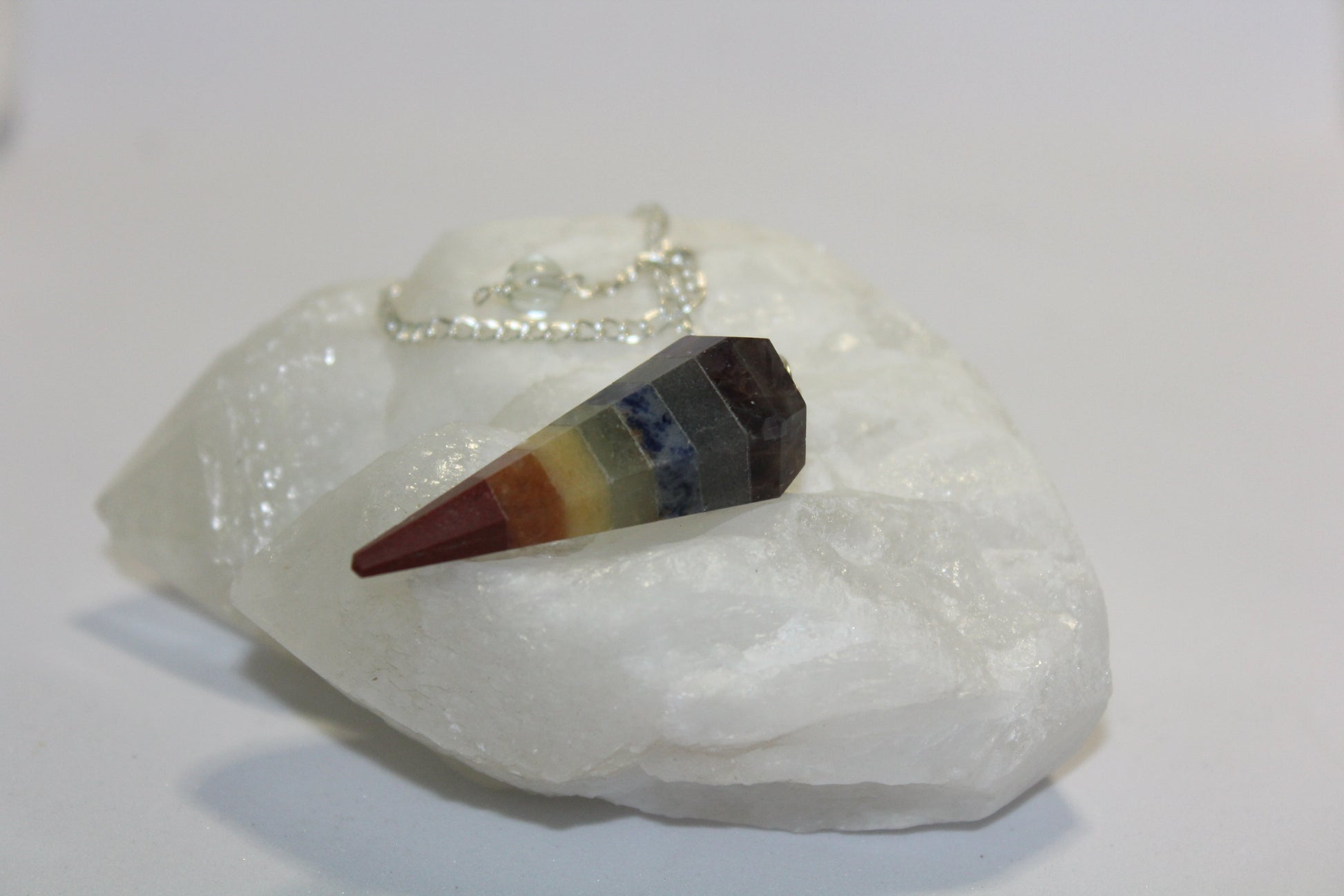 Get in touch with your 'higher-consciousness' by dowsing with this beautiful Chakra pendulum - 45mm (length) - 18mm (top diameter).