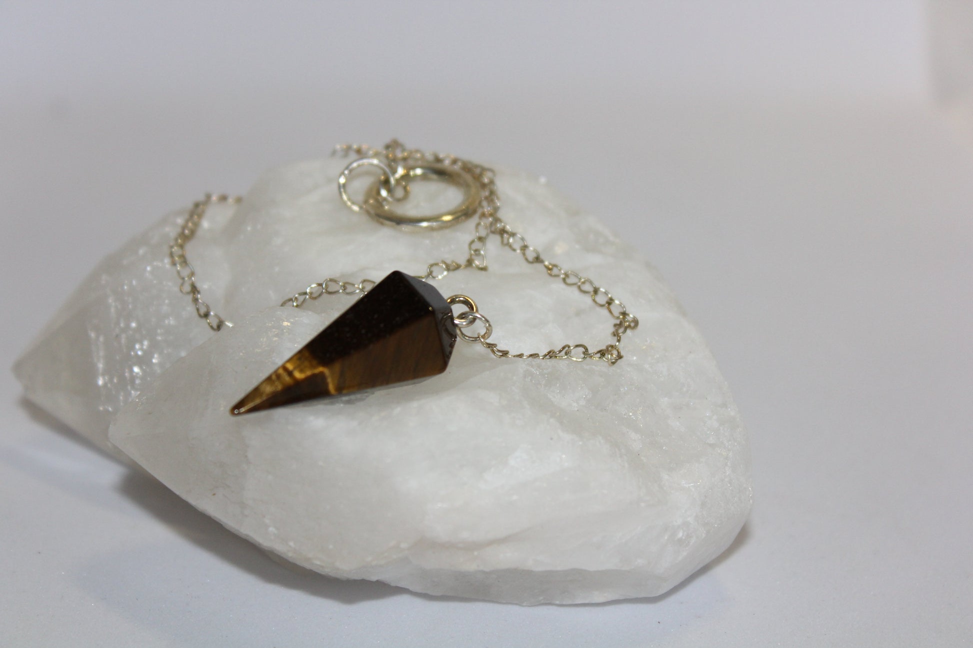 Get in touch with your 'higher-consciousness' by dowsing with this beautiful Tiger Eye pendulum - 30mm (length) - 15mm (top diameter).