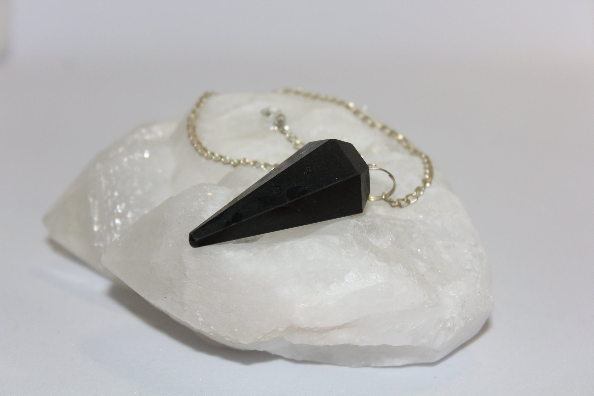 Get in touch with your 'higher-consciousness' by dowsing with this beautiful Tourmaline pendulum - 45mm (length) - 20mm (top diameter).
