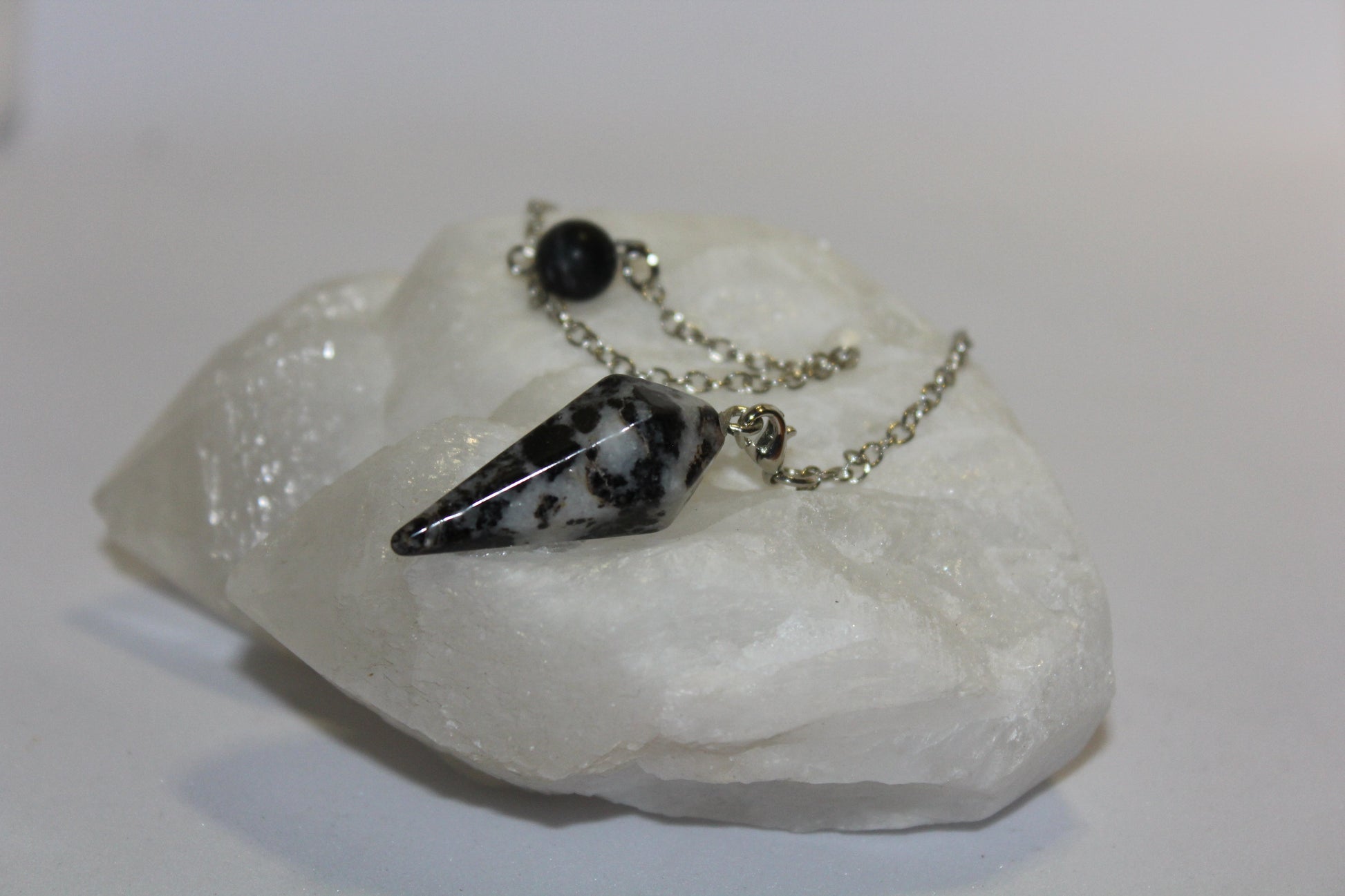 Get in touch with your 'higher-consciousness' by dowsing with this beautiful Zebra Marble pendulum - 35mm (length) - 15mm (top diameter).