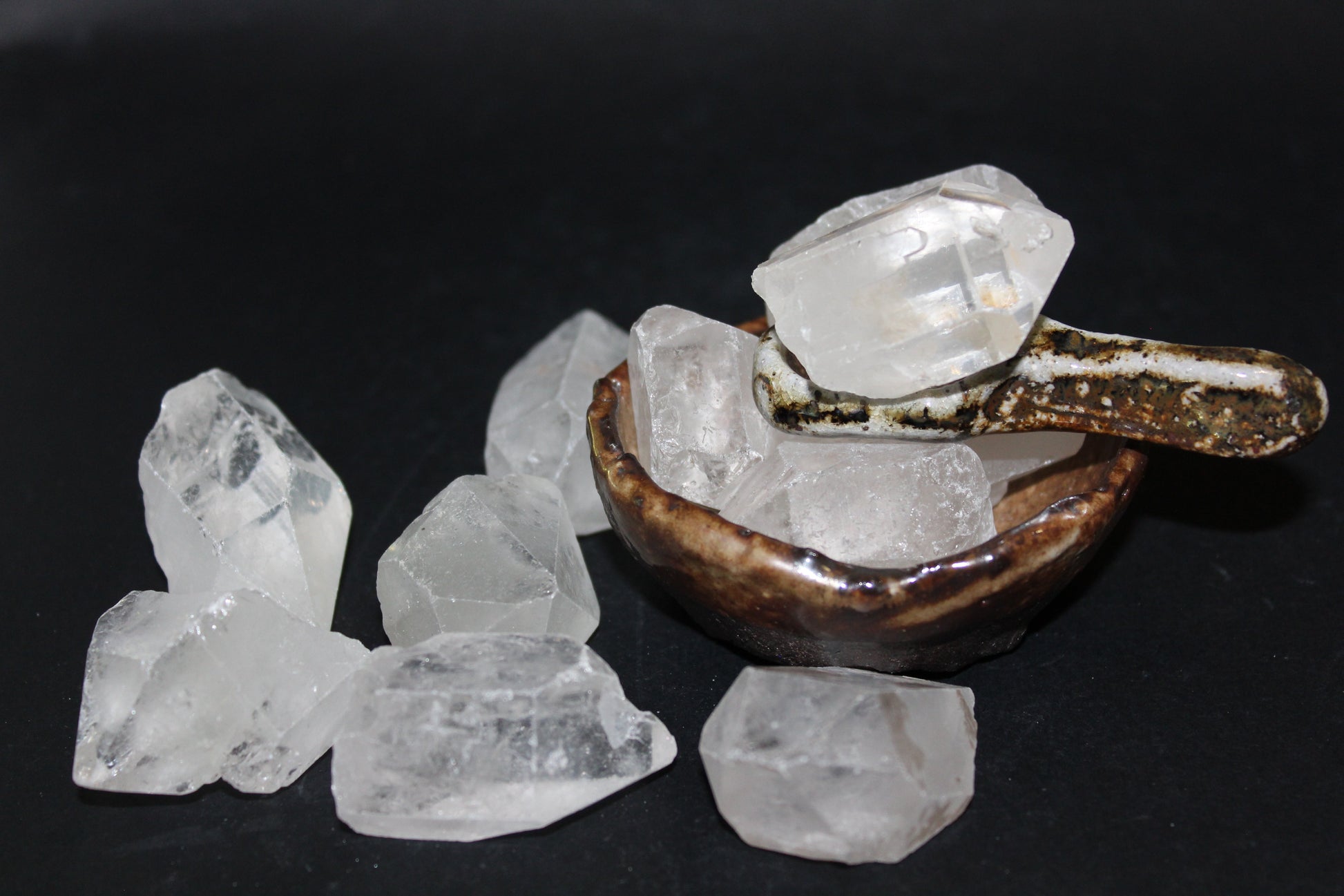 These raw Clear Quartz points are approx. 40mm (h) x 30mm (w) x 25mm (d) and weigh approx. 30gms each.