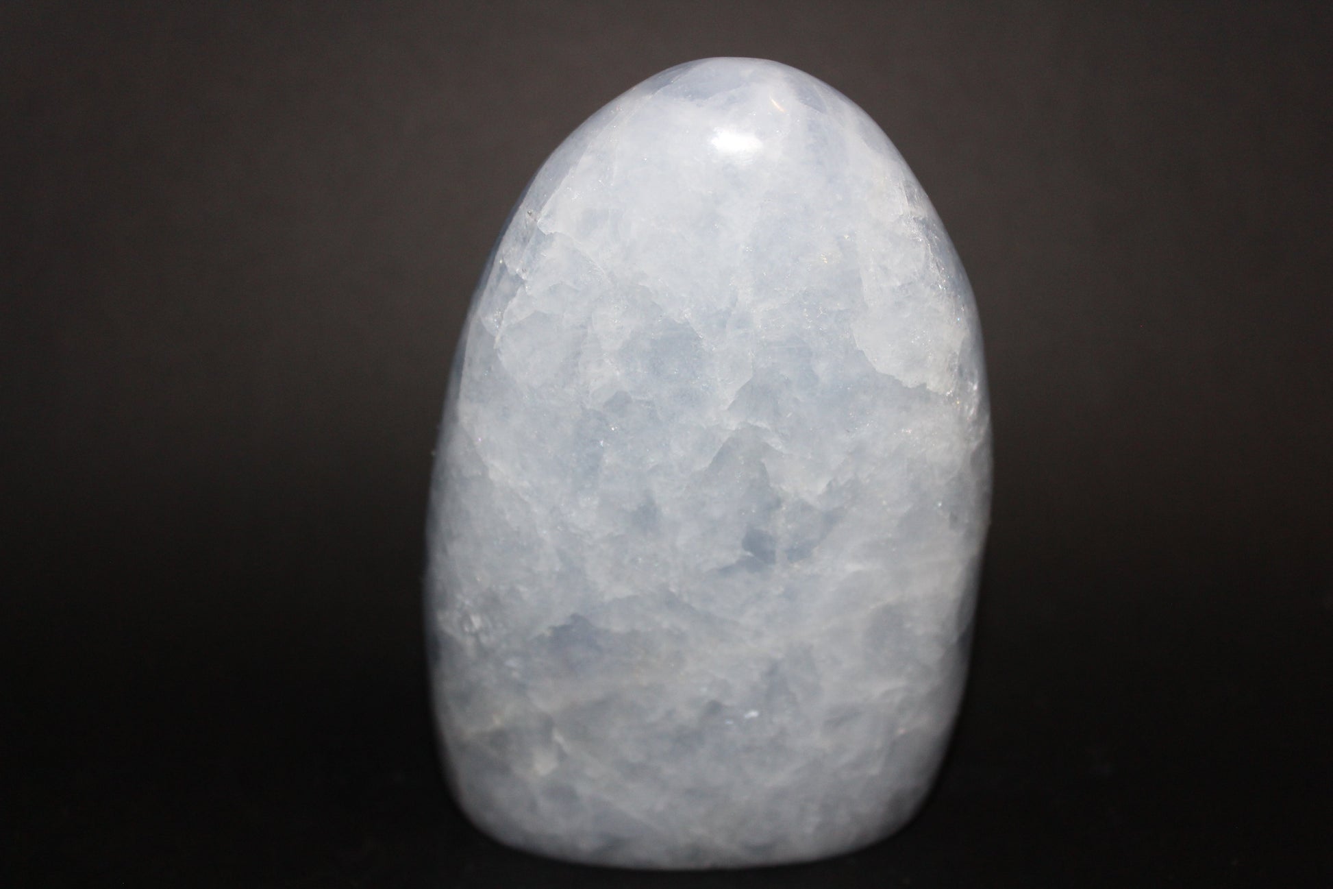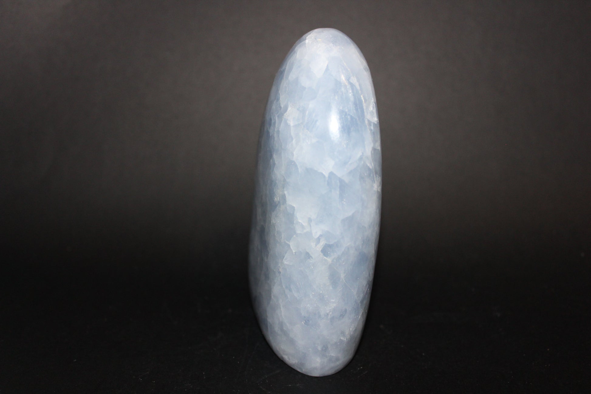 This beautiful polished Blue Calcite freeform stand is 115mm (h) x 70mm (w) x 35mm (d) and 495gms.