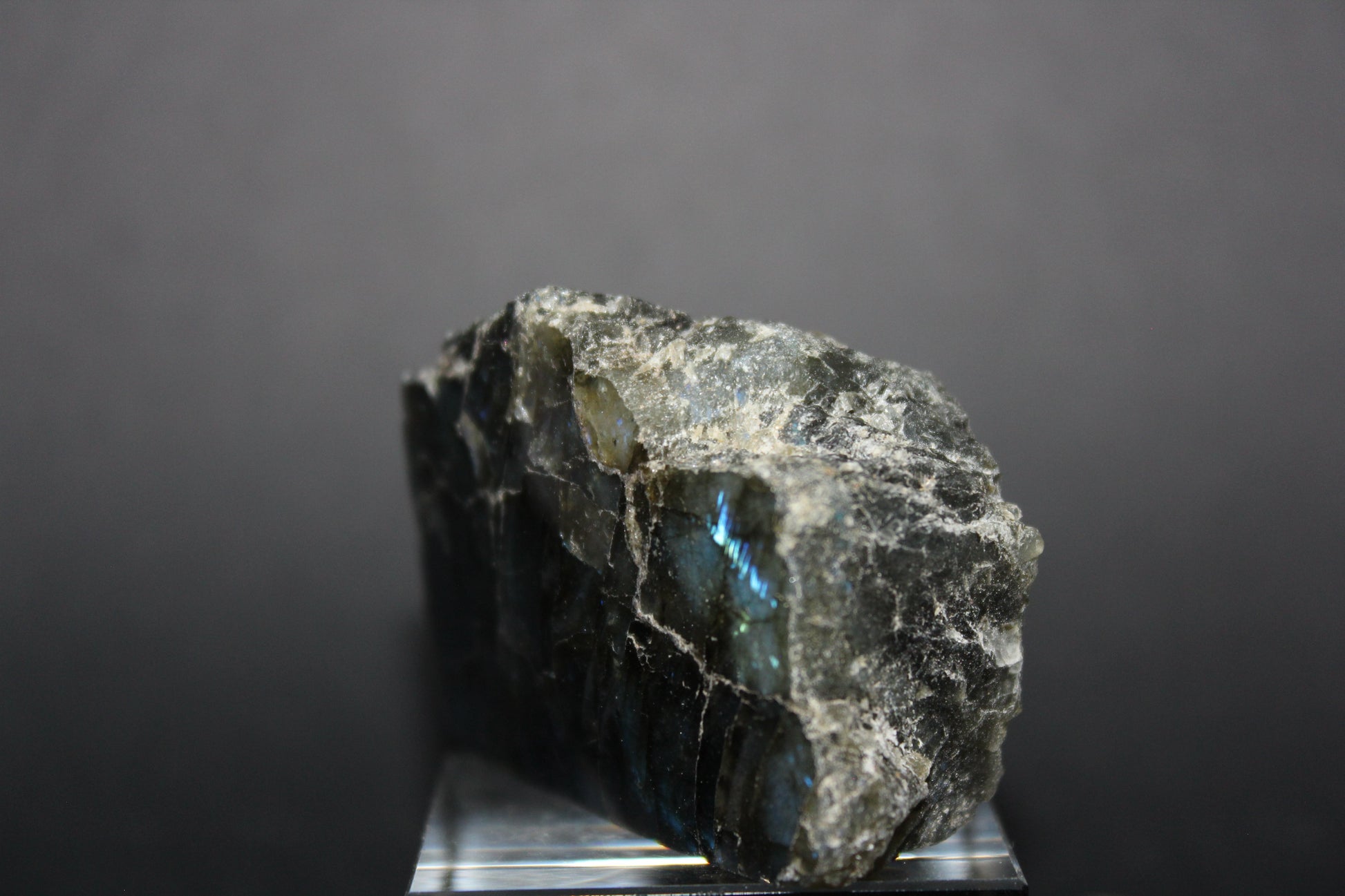 This beautiful 1/2 polished, 1/2 raw Labradorite freeform stand is 35mm (h) x 50mm (w) x 20mm (d) and 71gms.