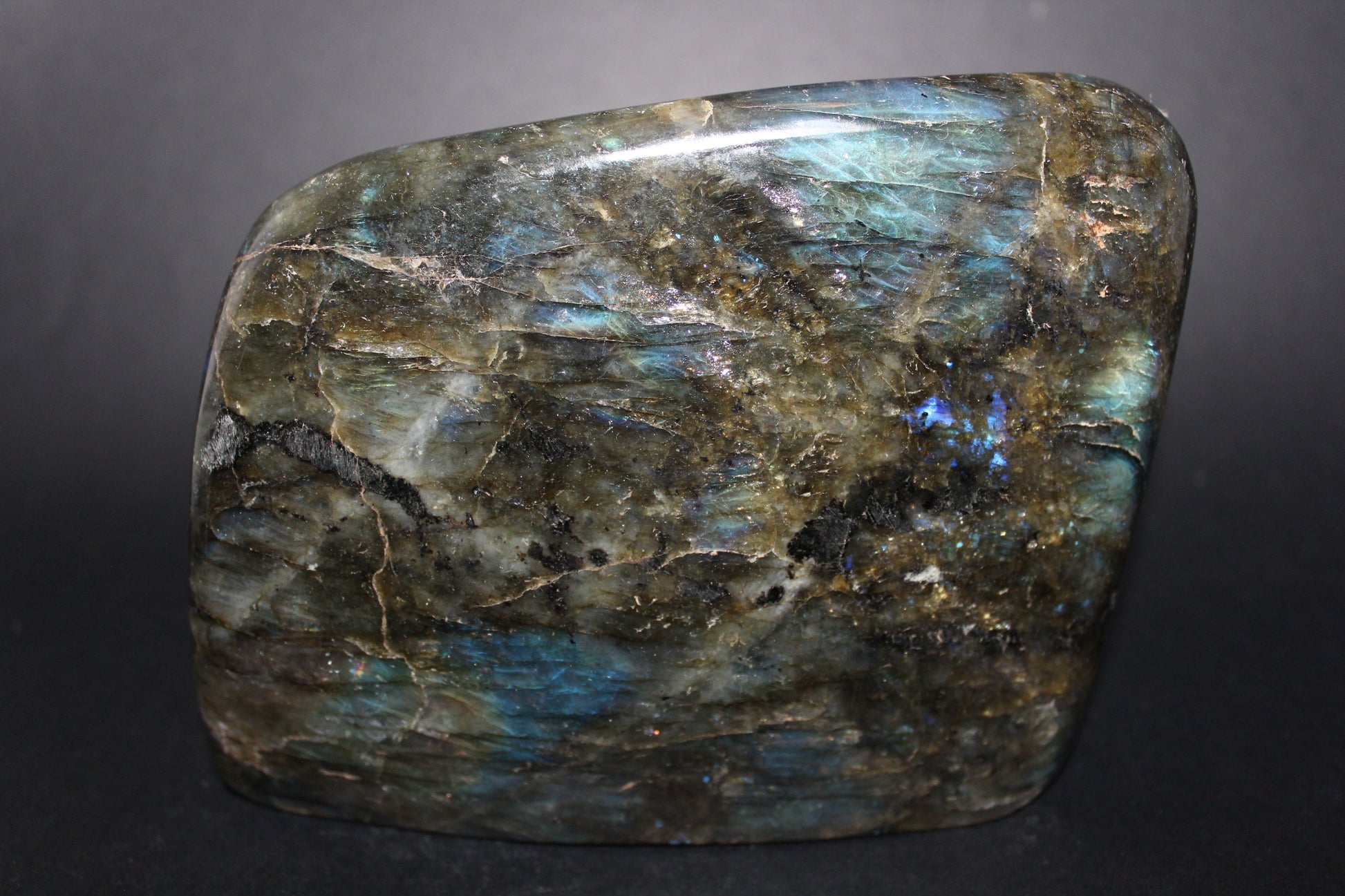 This beautiful polished Labradorite freeform stand is 113mm (h) x 105mm (w) x 50mm (d) and 1465gms.
