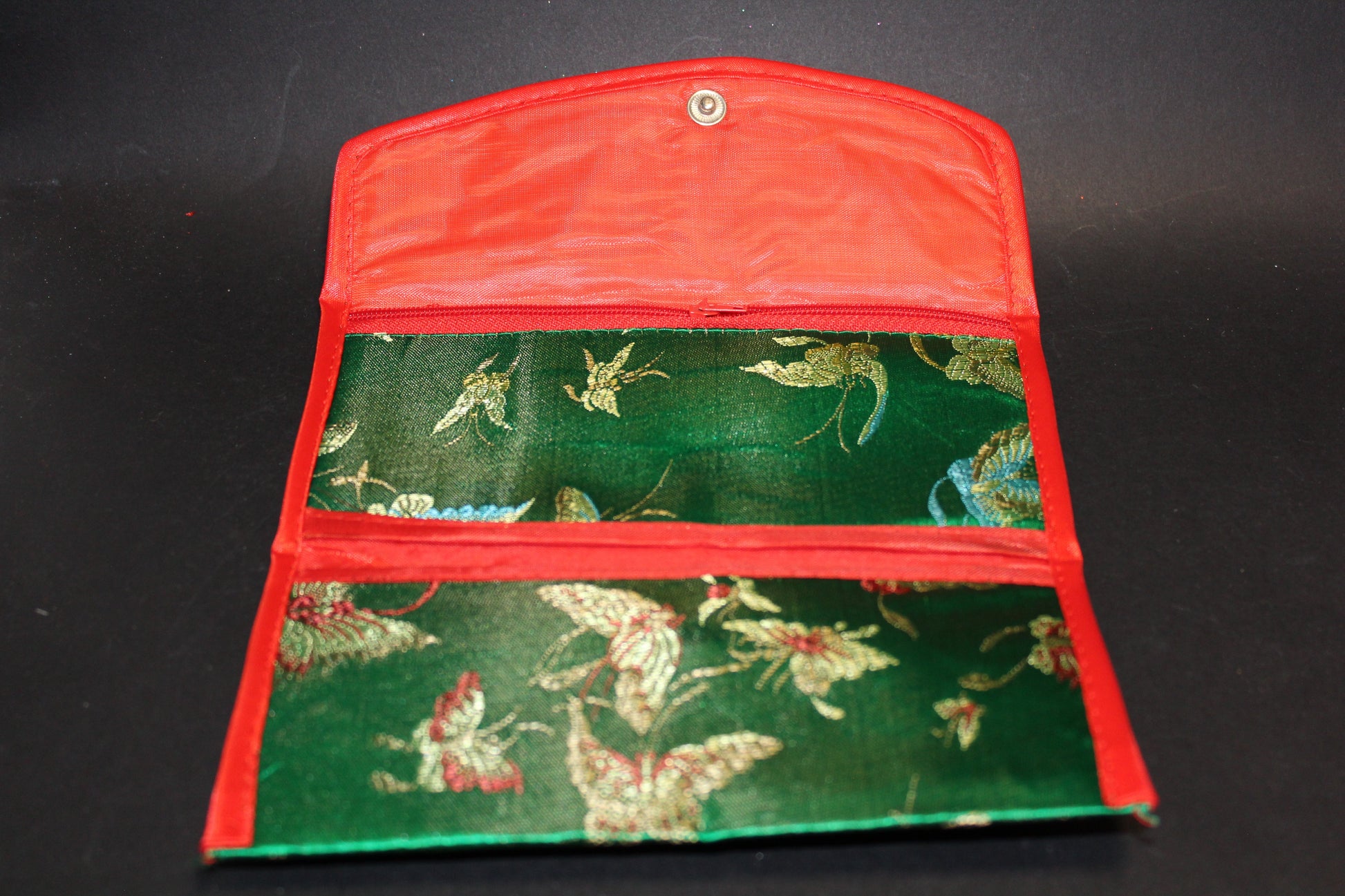 Embroidered Silk wallet (trifold with clip, 1 zippered pocket and one open pocket inside). Blue - 180mm x 85mm.