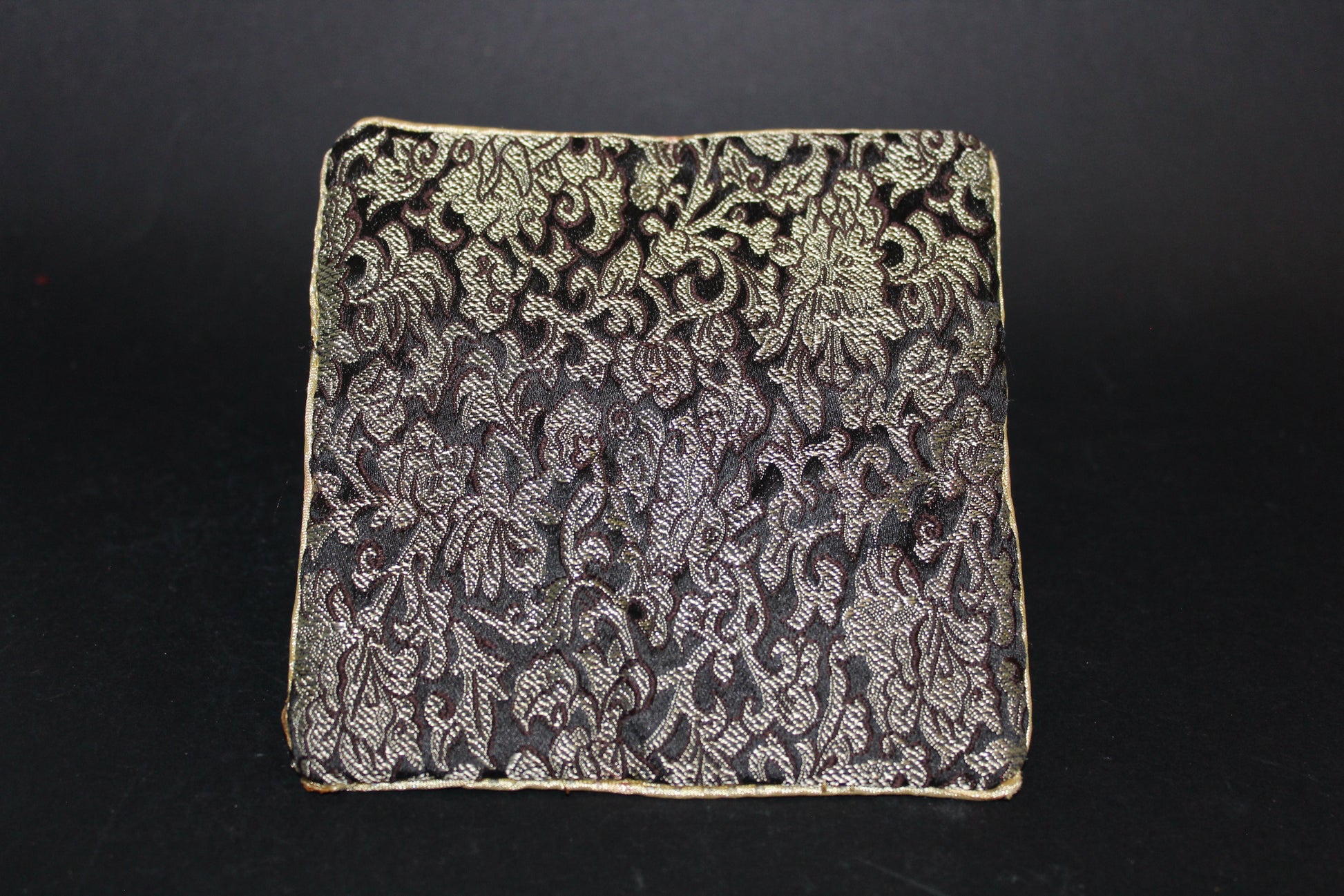 Beautiful embroidered silk purse (Black/Silver). One zippered, silk lined pocket - 120mm x 120mm.